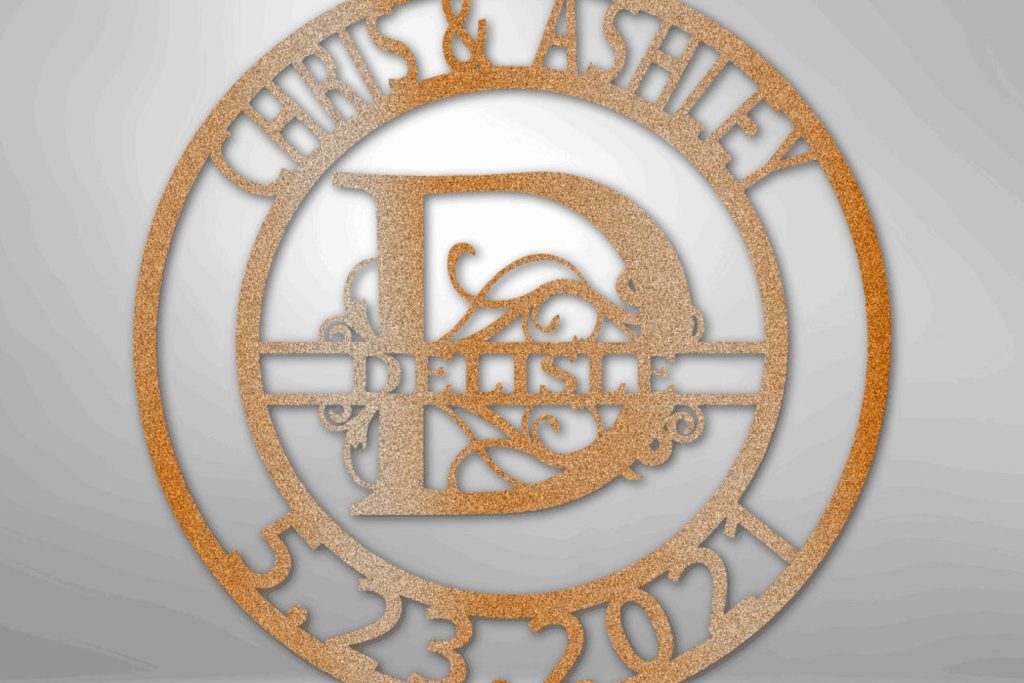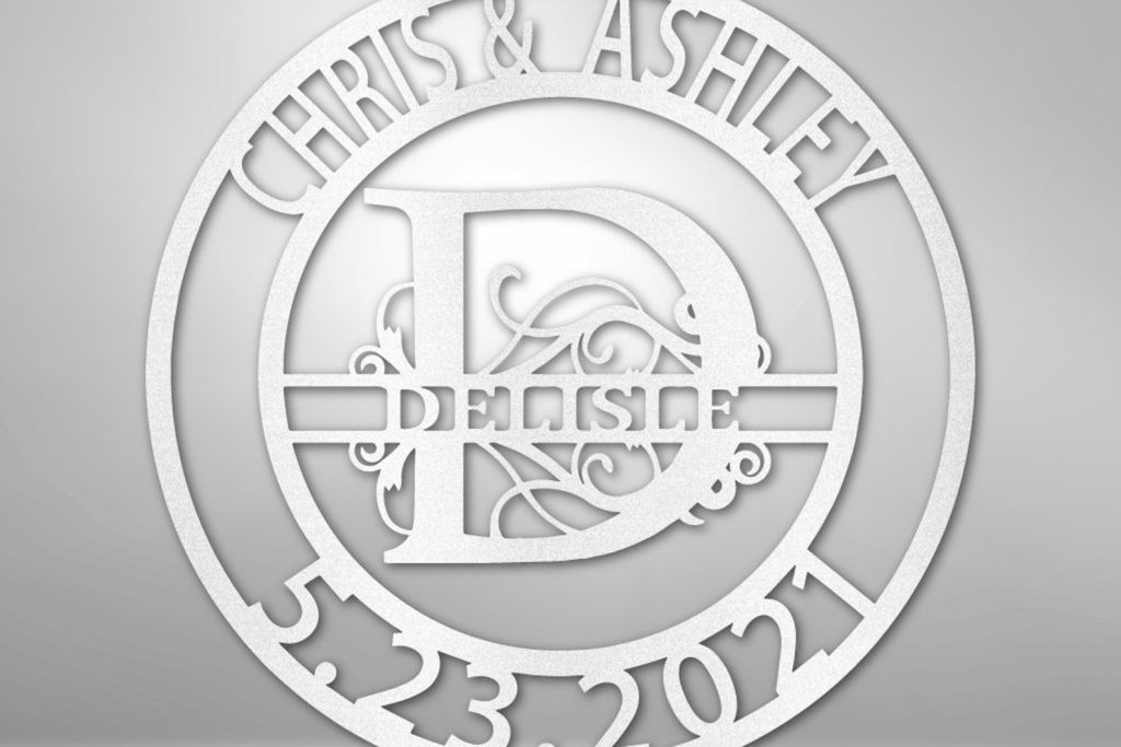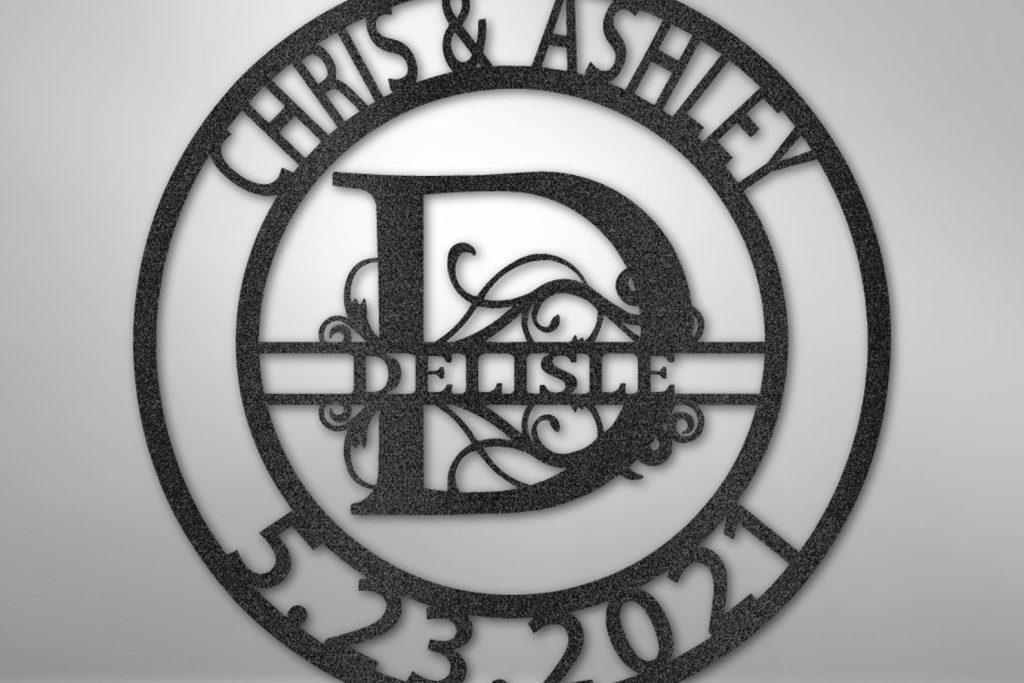 Personalized Metal Wall Art Sign, Family Tree Wall Art, Wall Art Family Name Sign. Metal Wall Art Signed Personalized with Family Name, Couple9;s Name, Date and Letter. Great housewarming Gift, Wedding Monogram, Anniversary. The Elaborate Split Family Name Sign has 3 lines of personalized text and your initial in a fancy font the middle…what more could you ask for? Item does not come with mounting hardware.