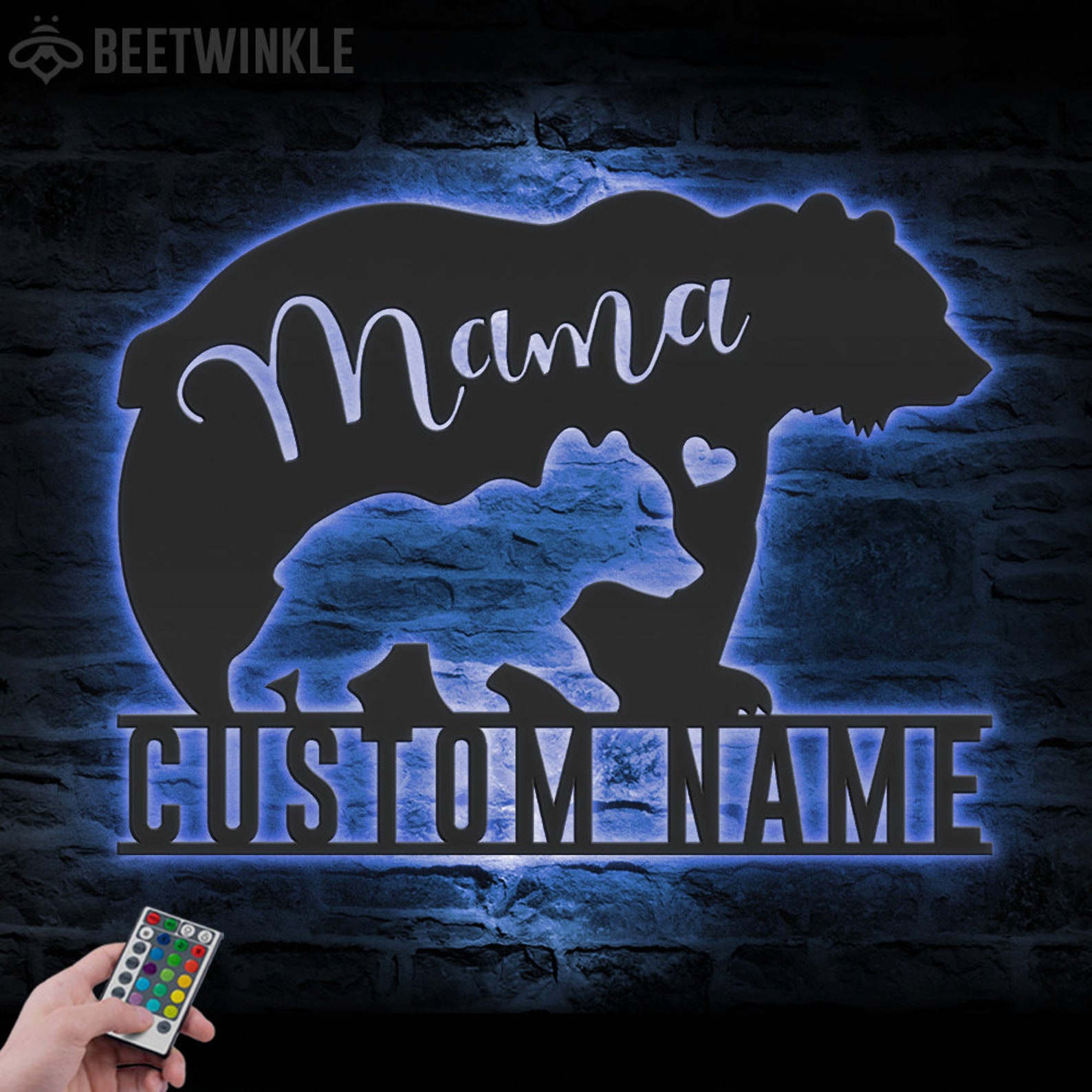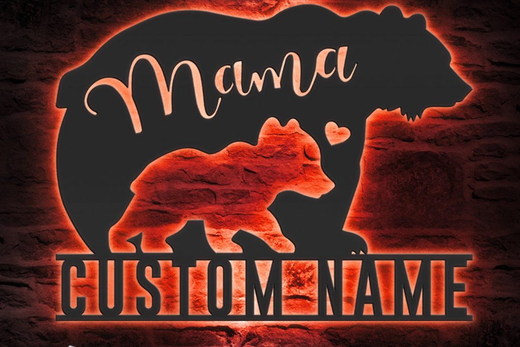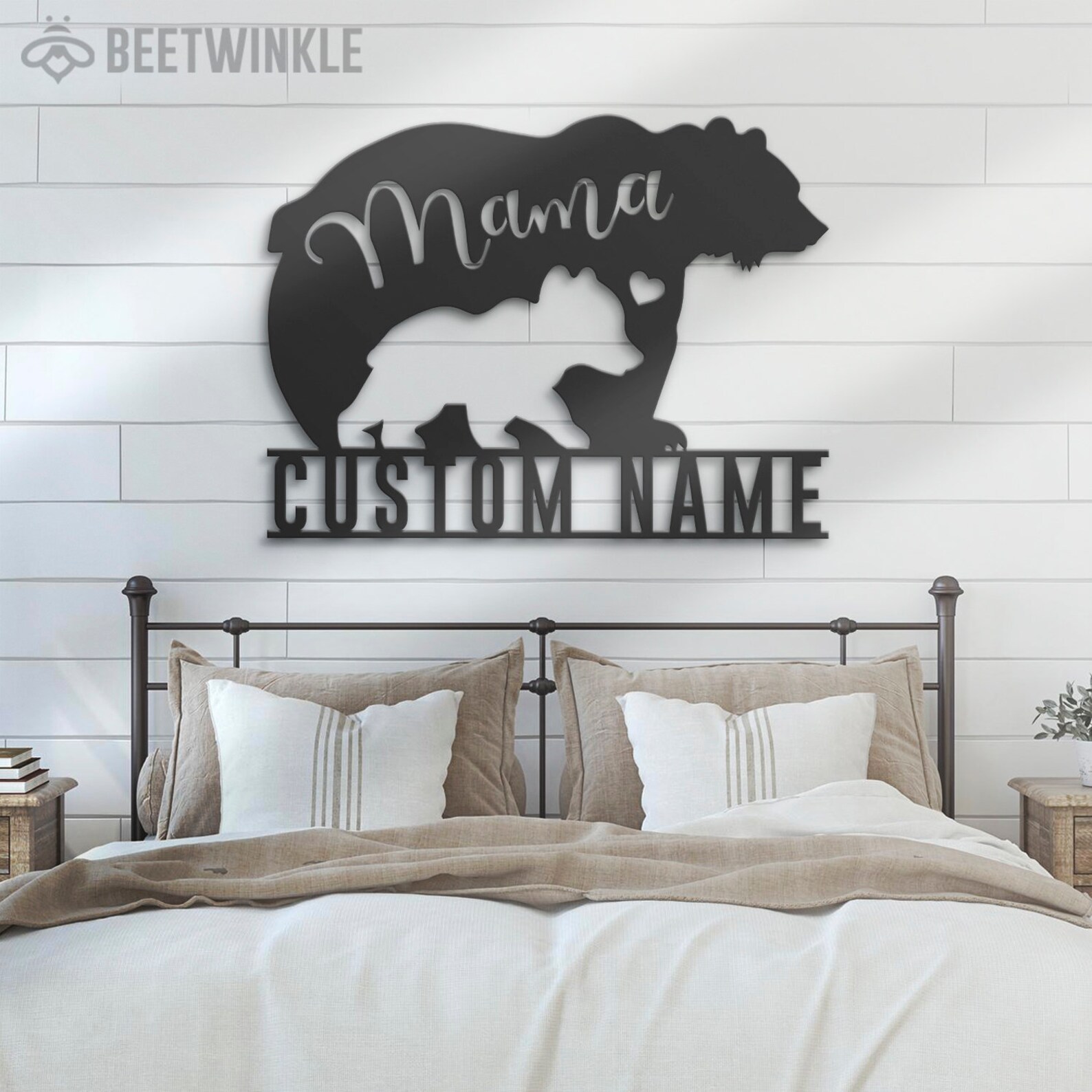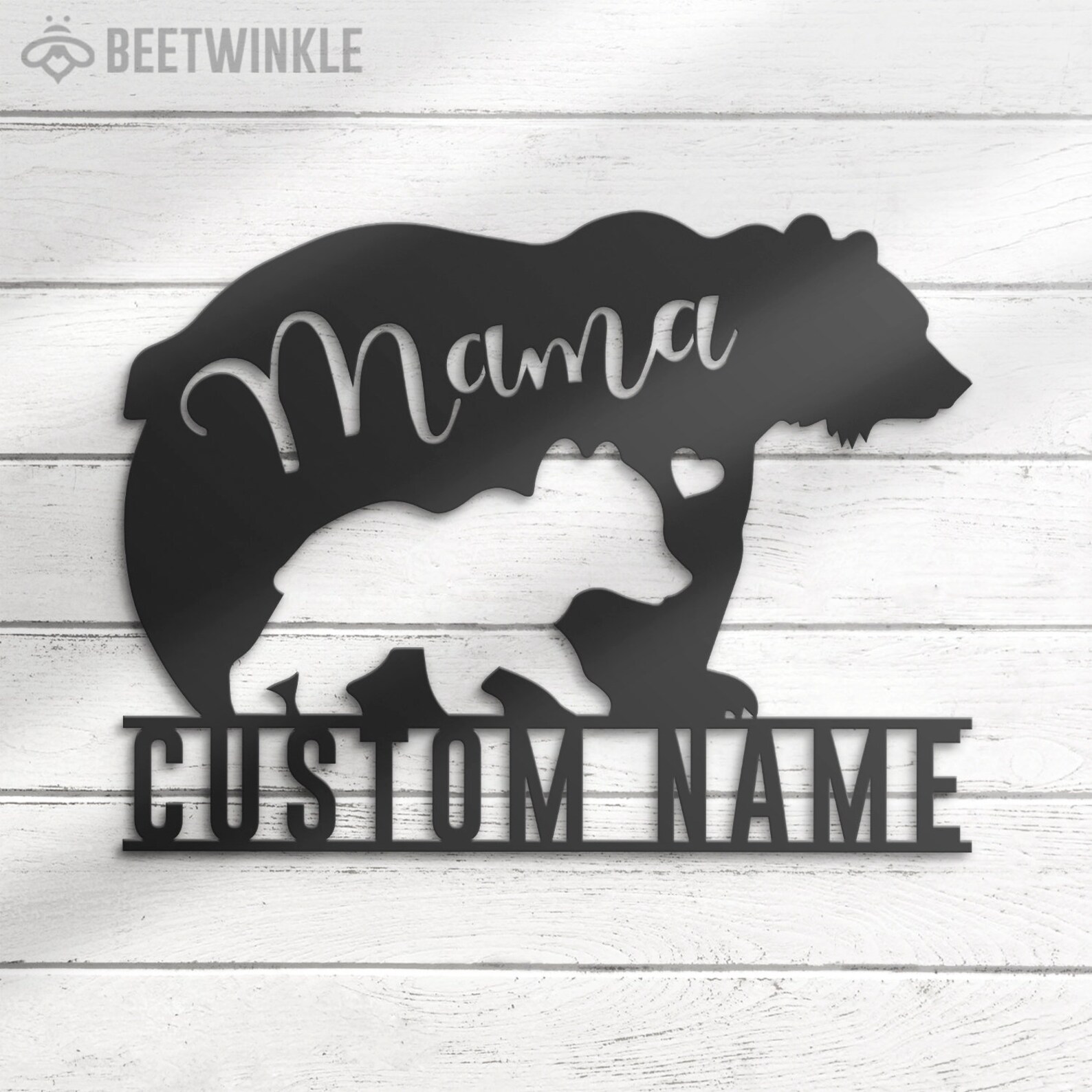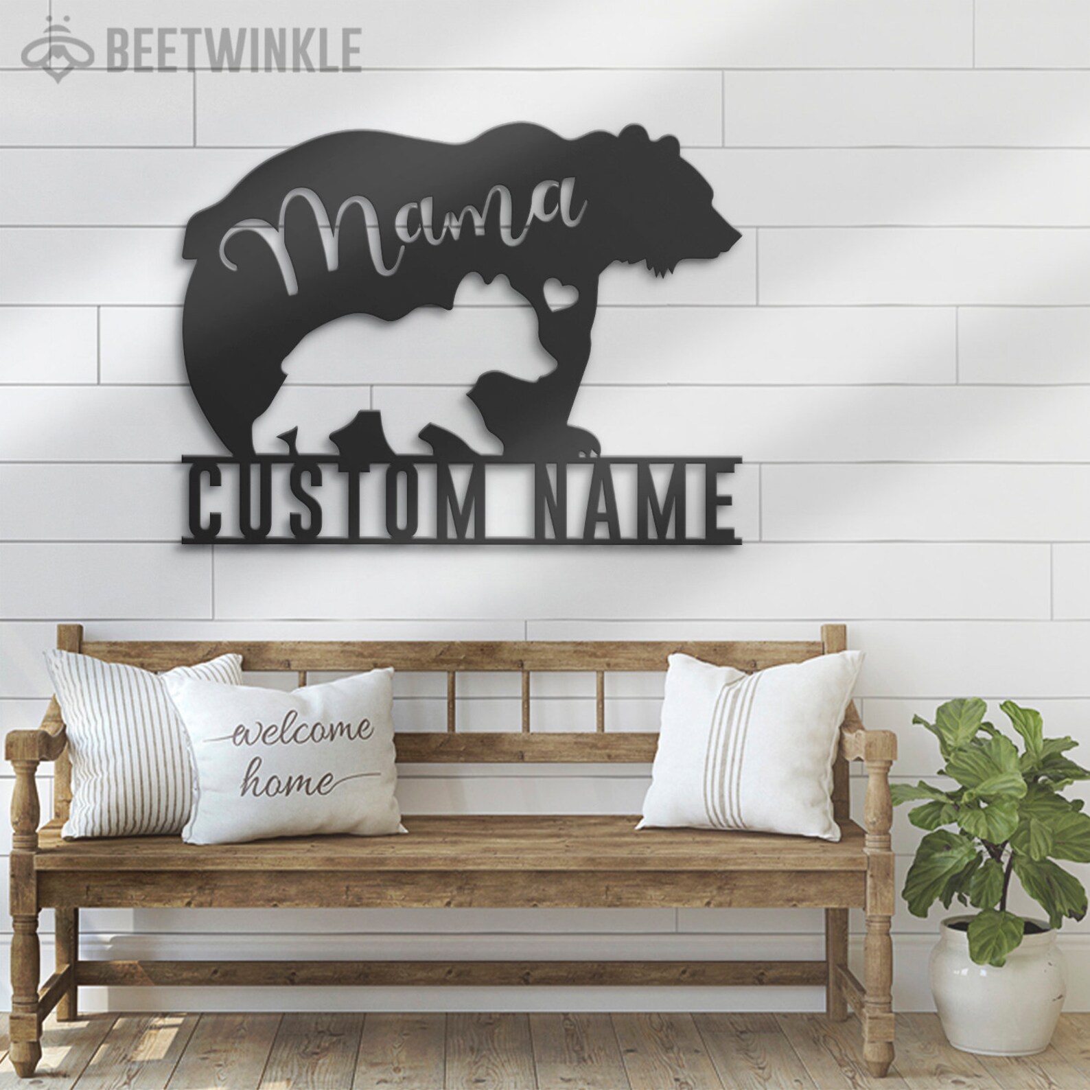 Personalized Mom & Baby Bear Sign: Metal Wall Art