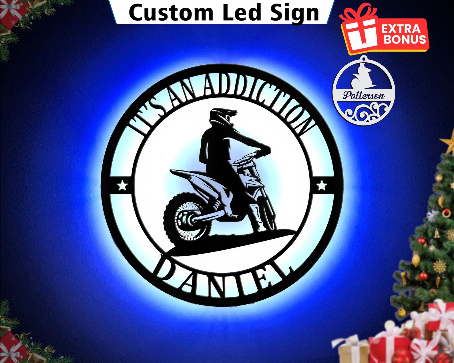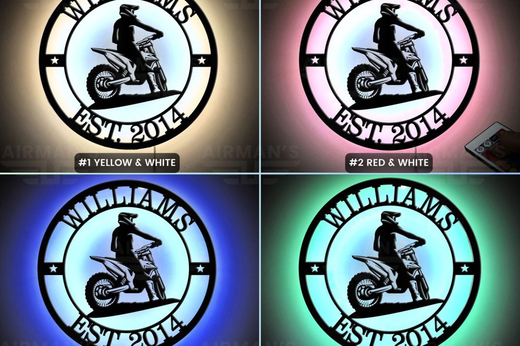 Motocross Dirt Bike LED Art – Personalized Metal Sign, Extreme Sports Wall Decor