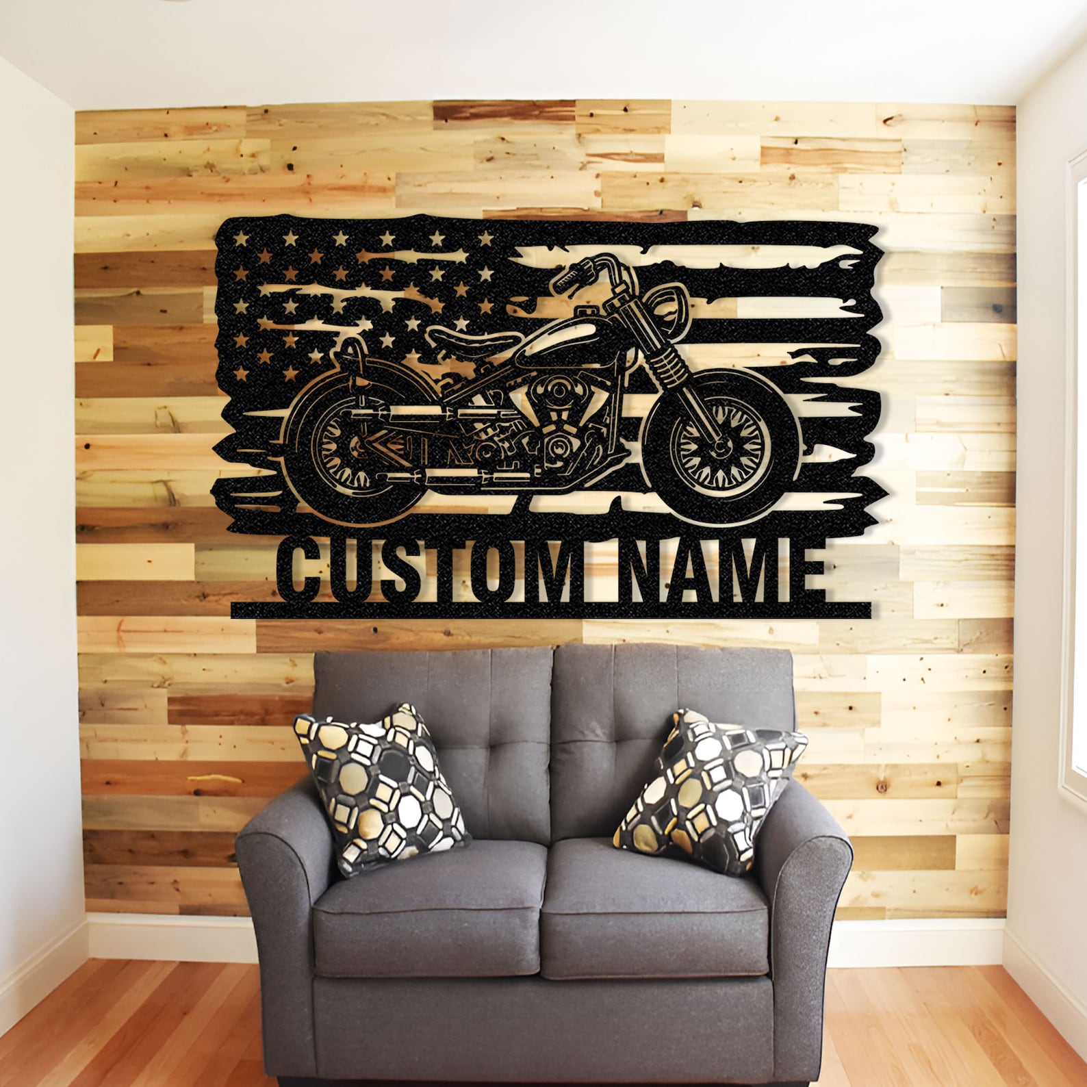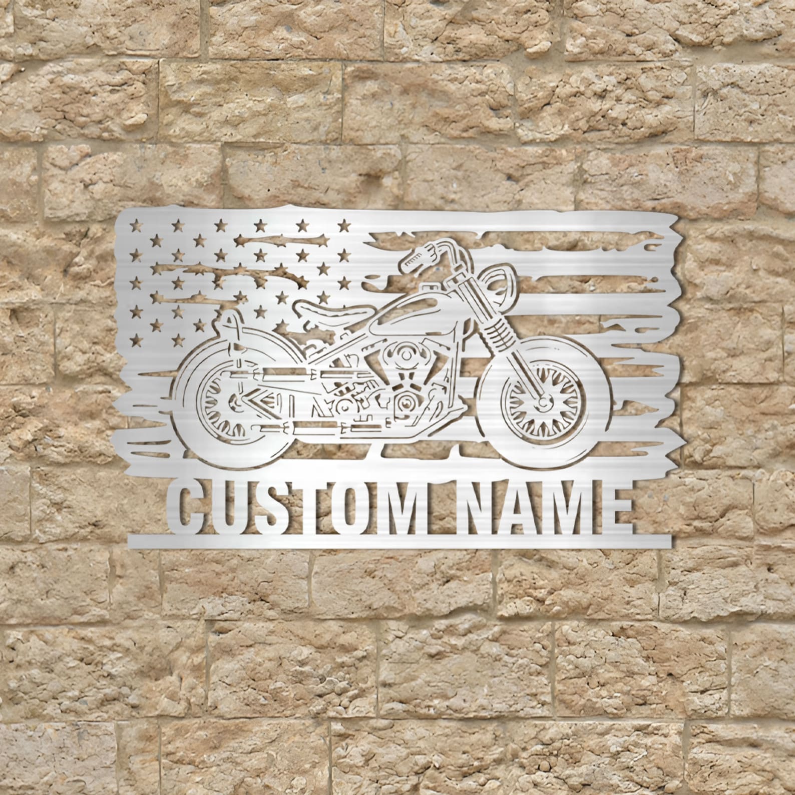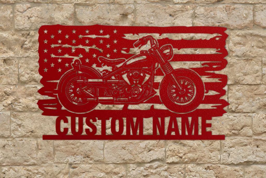 Personalized Motorcycle and US flags Metal Sign,Motorcycle Metal SignMetal Garage Sign,Man Cave Sign,Christmas Gift for him,Birthday Gift