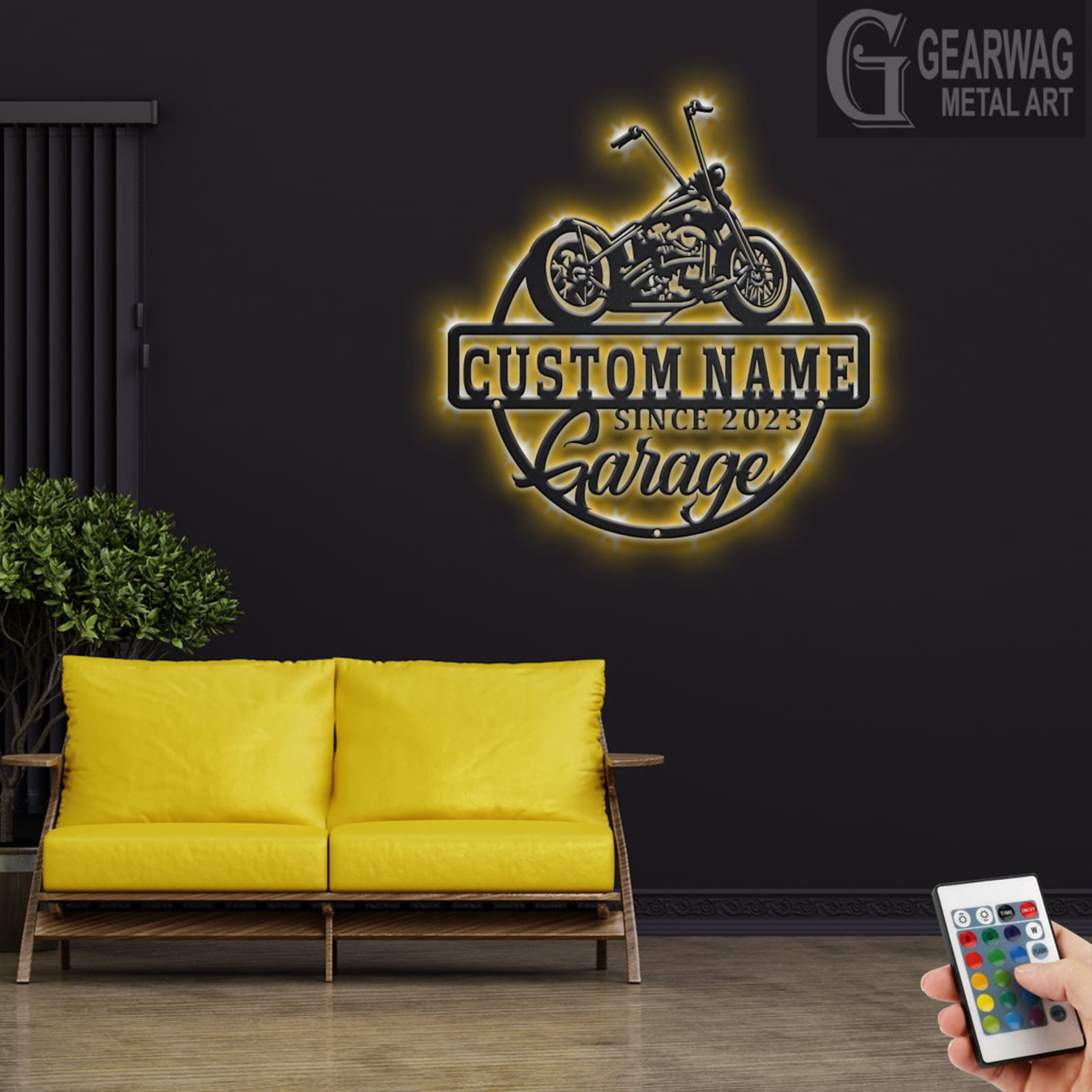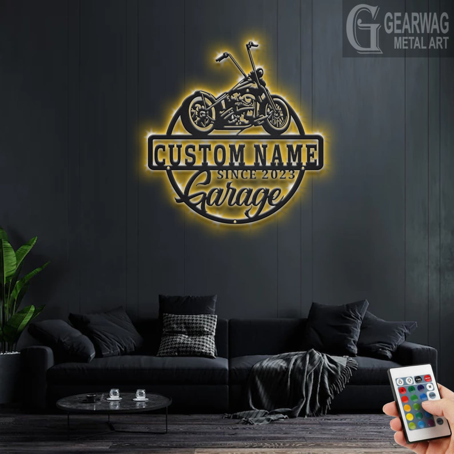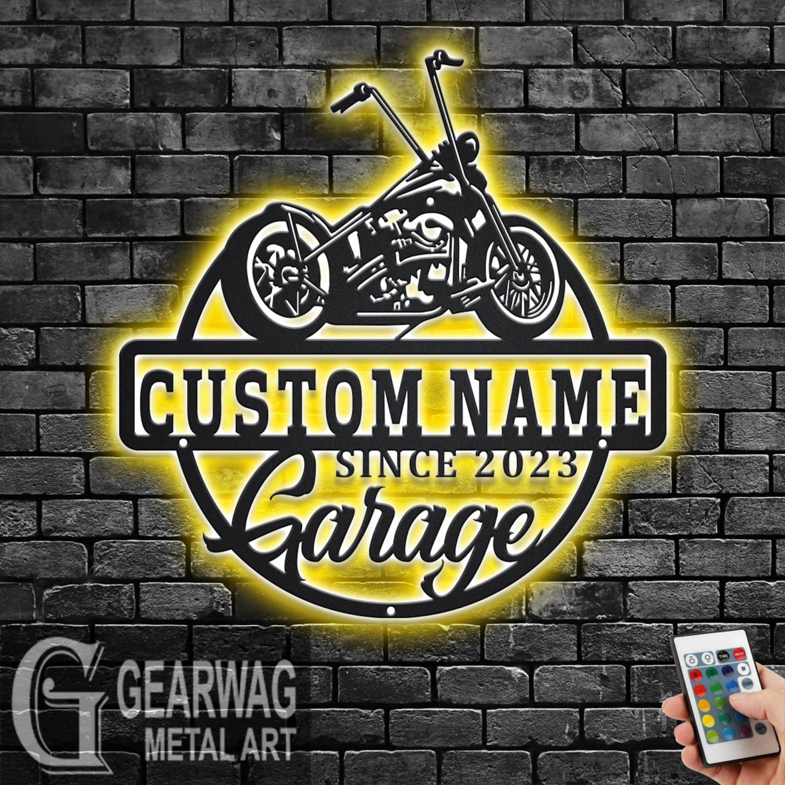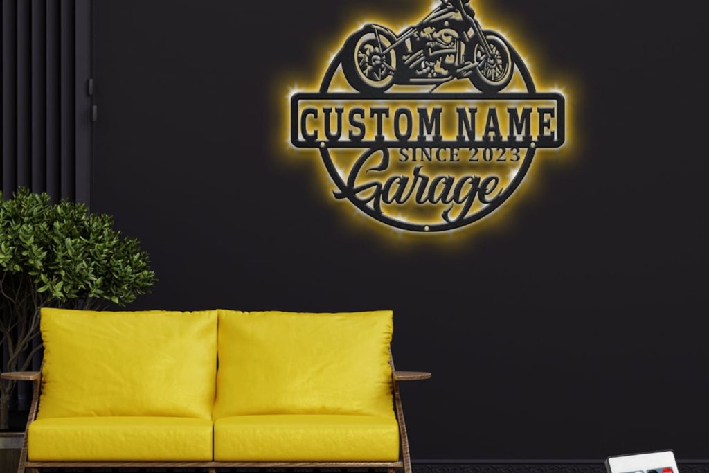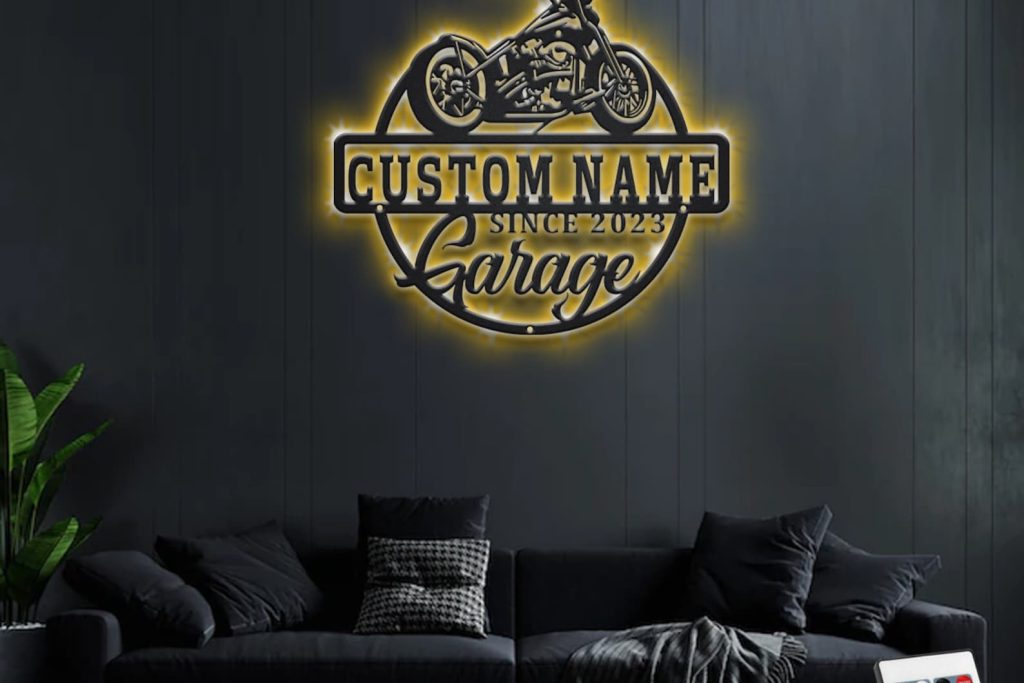 Be the first to review “Personalized Motorcycle Garage Name Metal Sign – LED Light, Custom Biker Name Sign”