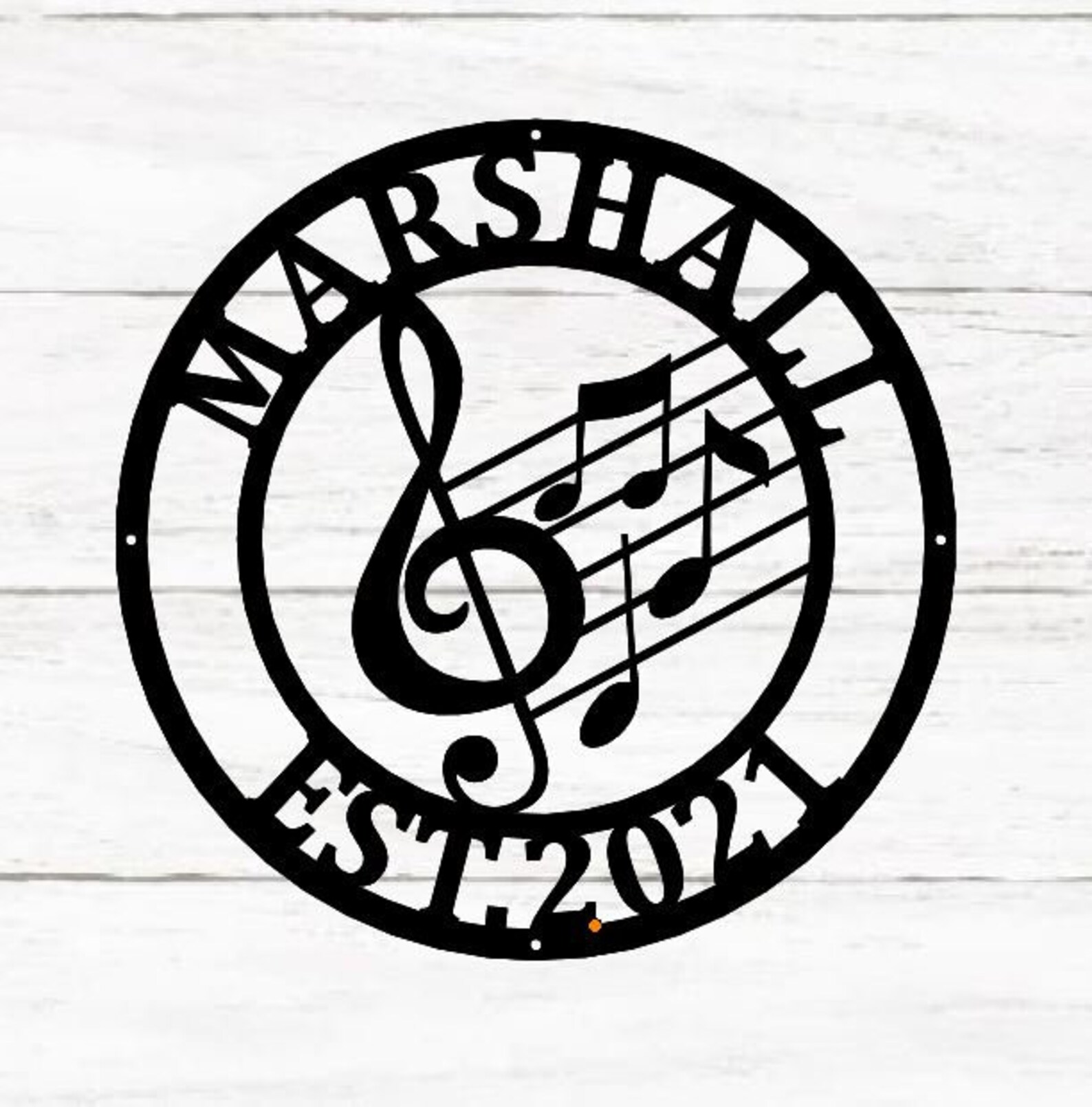 Personalized Music Sign, Established Family Name, Metal Wall Art