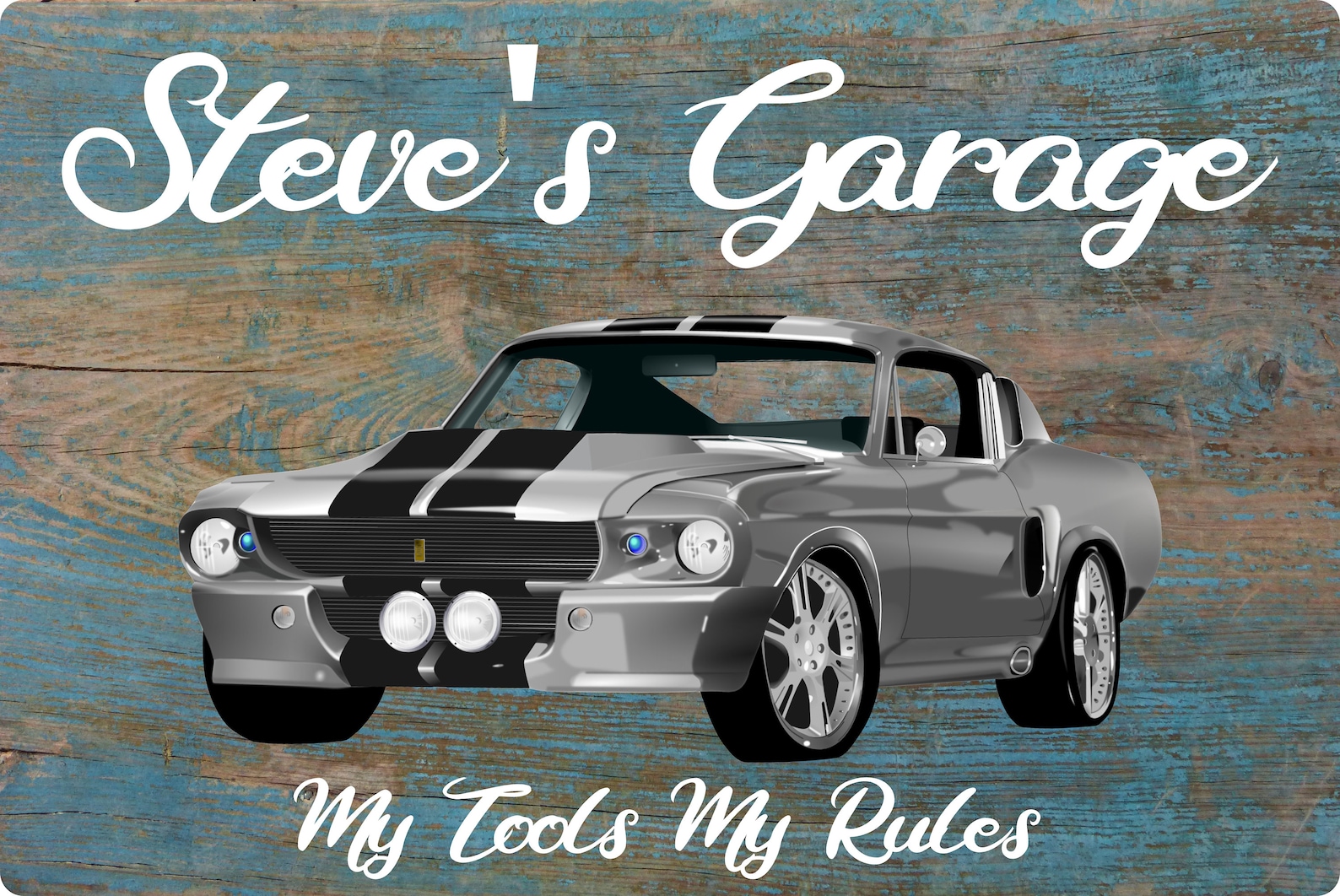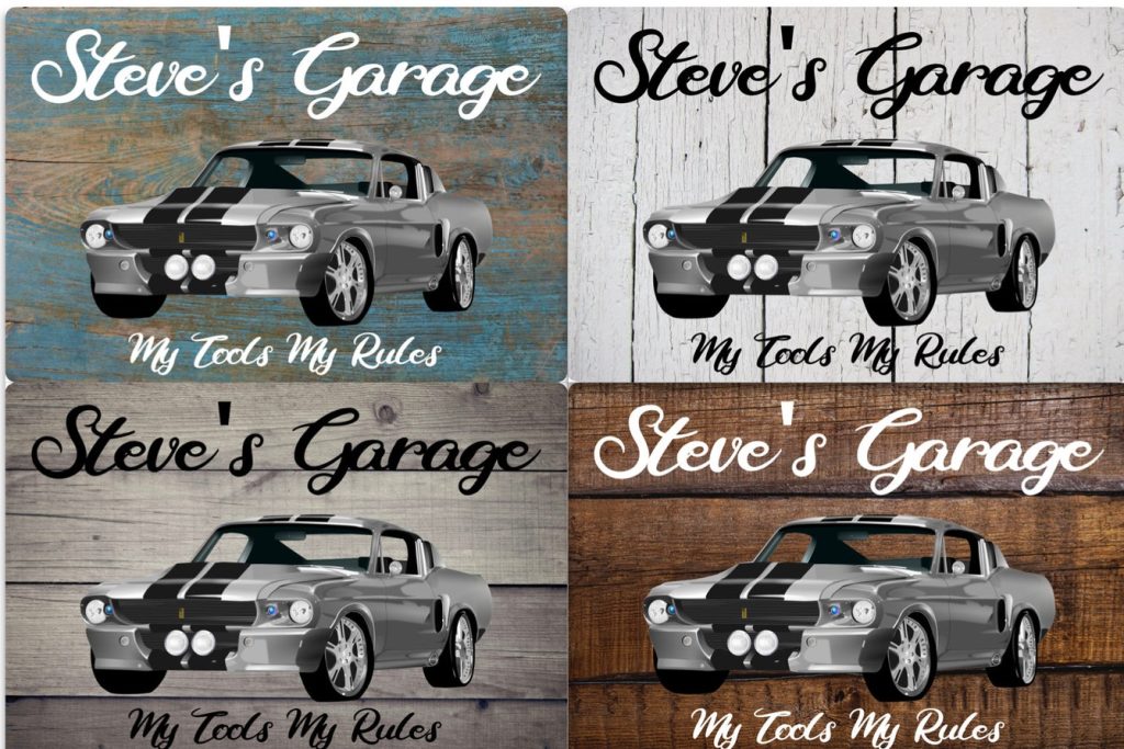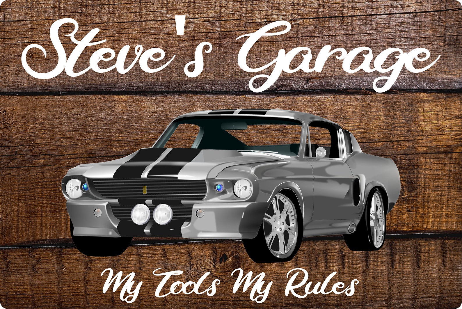 Personalize your Garage My tools my rules- Black text on you choose 9;wood9; background. -NOTE the Wood or rust is NOT real.
