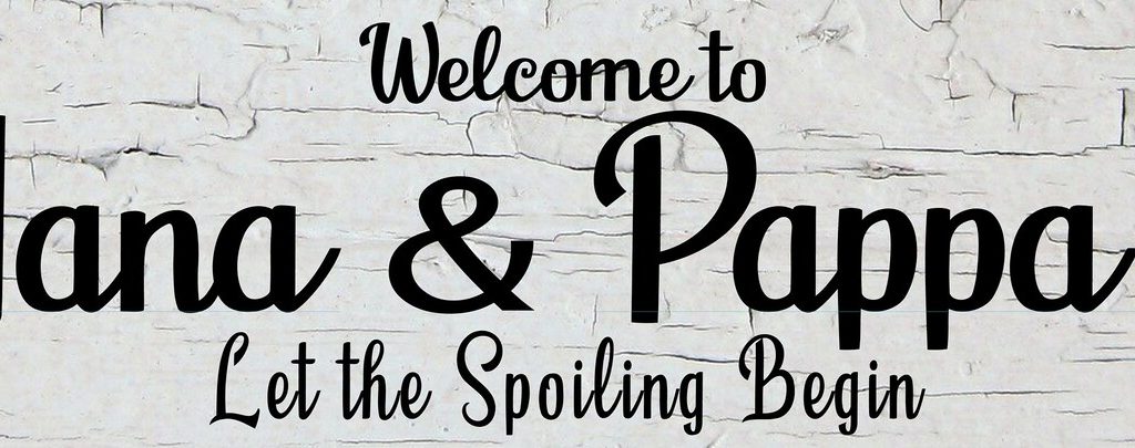PERSONALIZE Welcome to Grandma n Grandpa9;s let the spoiling begin – choose background – Barn wood, Grey & White Crackle- wood style backgrounds – Metal Sign Door Plaque – (Note not actual wood so smooth and safe to the touch)
