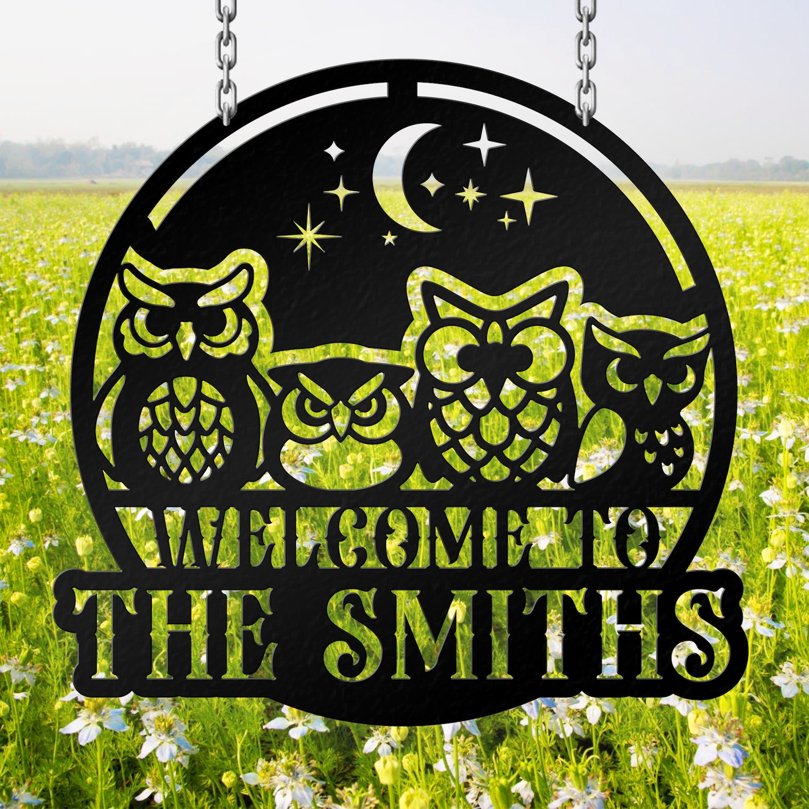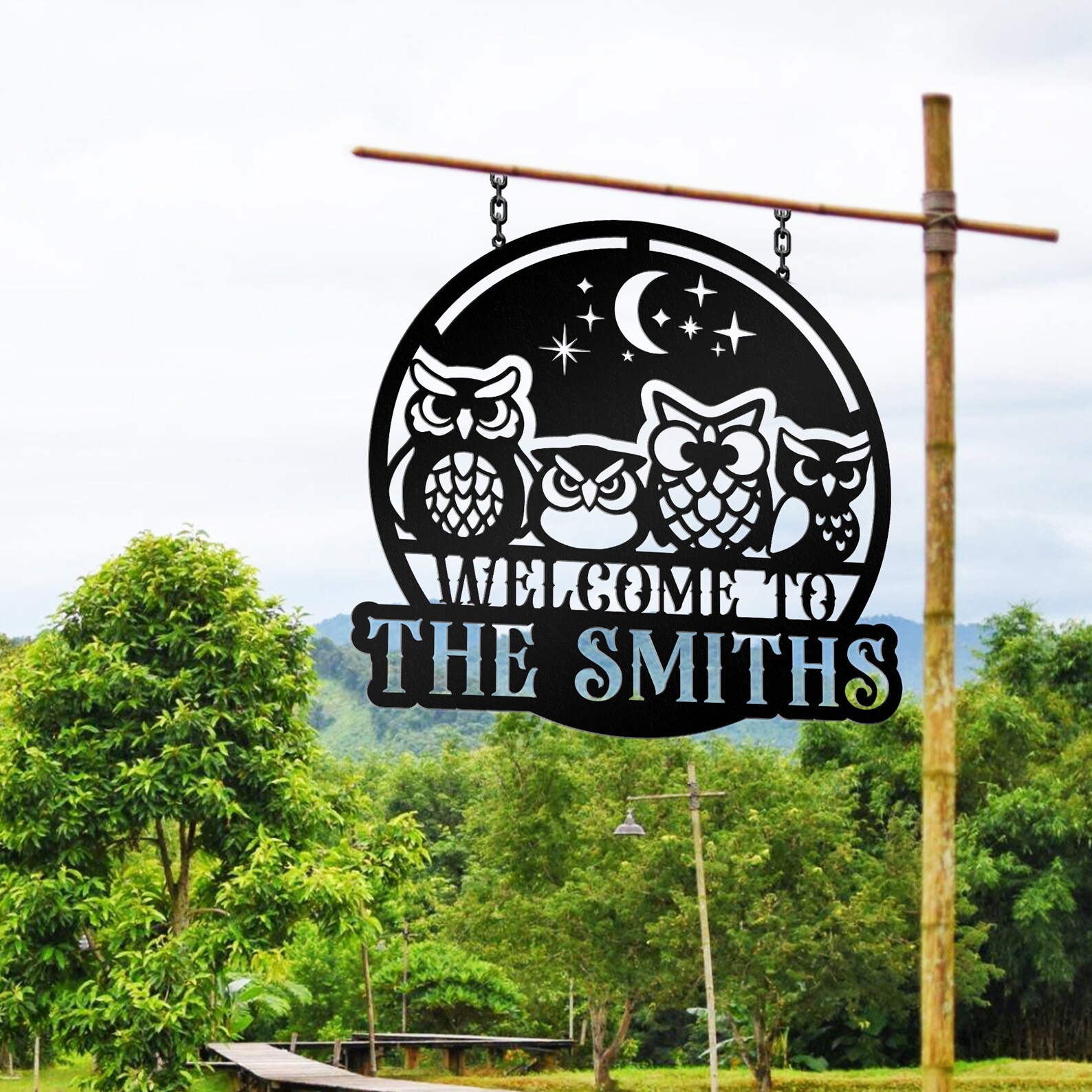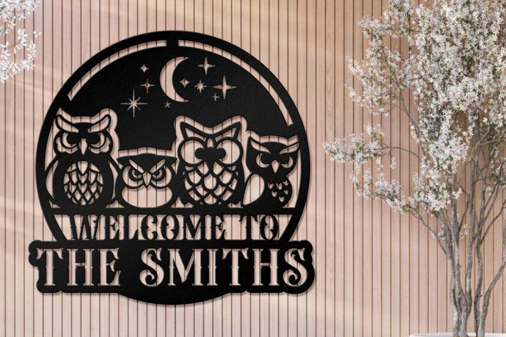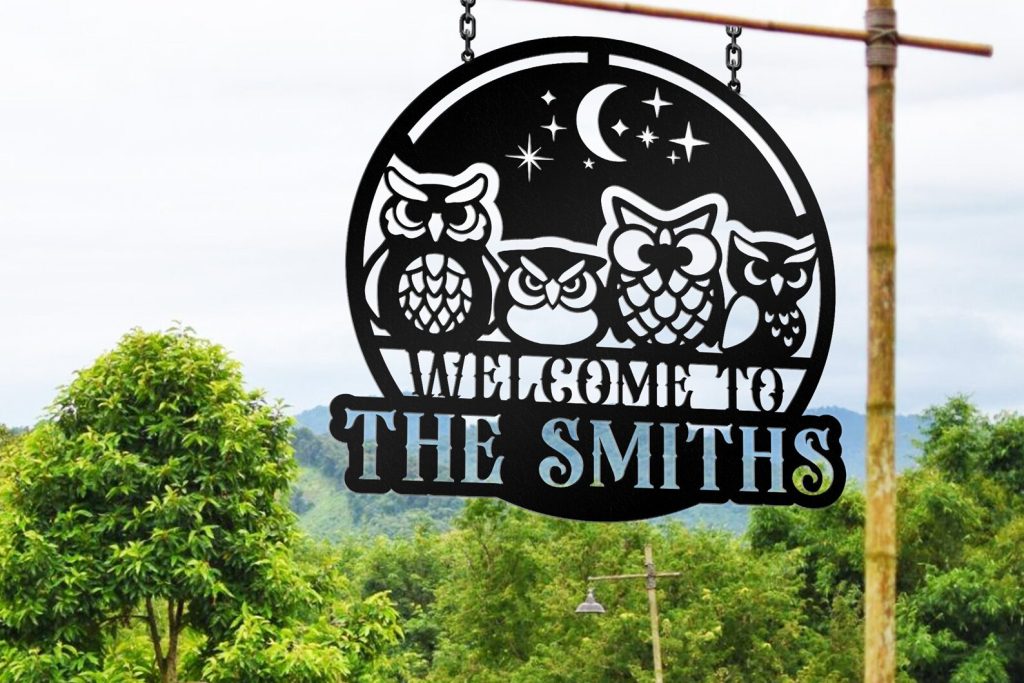 Personalized Owl Nest Metal Sign – Lake House Decor