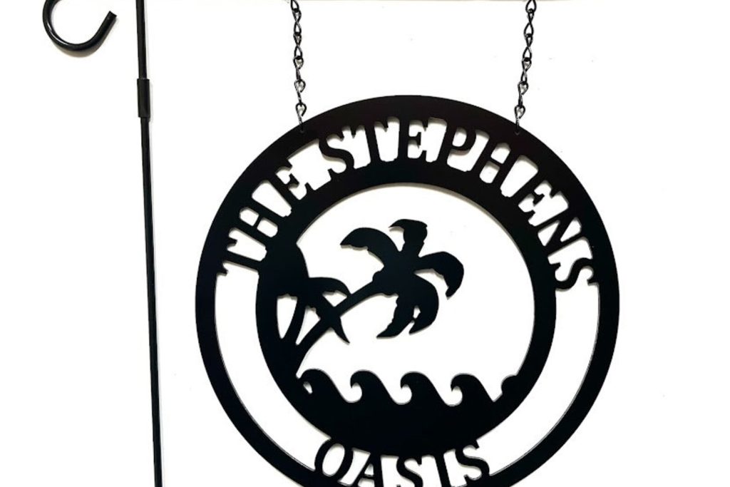 Our palm trees and waves personalized decor comes in 3 sizes and you can choose your colors. You can customize the top and bottom lines with up to 15 characters/spaces. Also choose your hanging option. Read about our unique weatherproof material that will last any any climate for many many years!!!