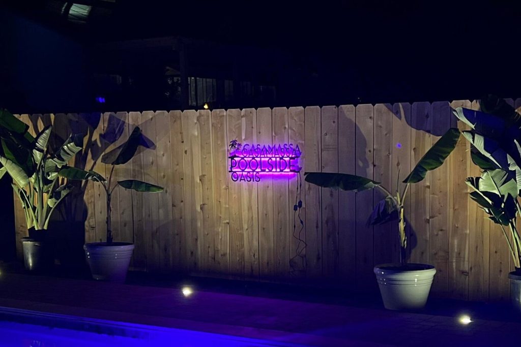 Personalized Palm Tree Oasis Pool Sign – Pictured in Matte Black
