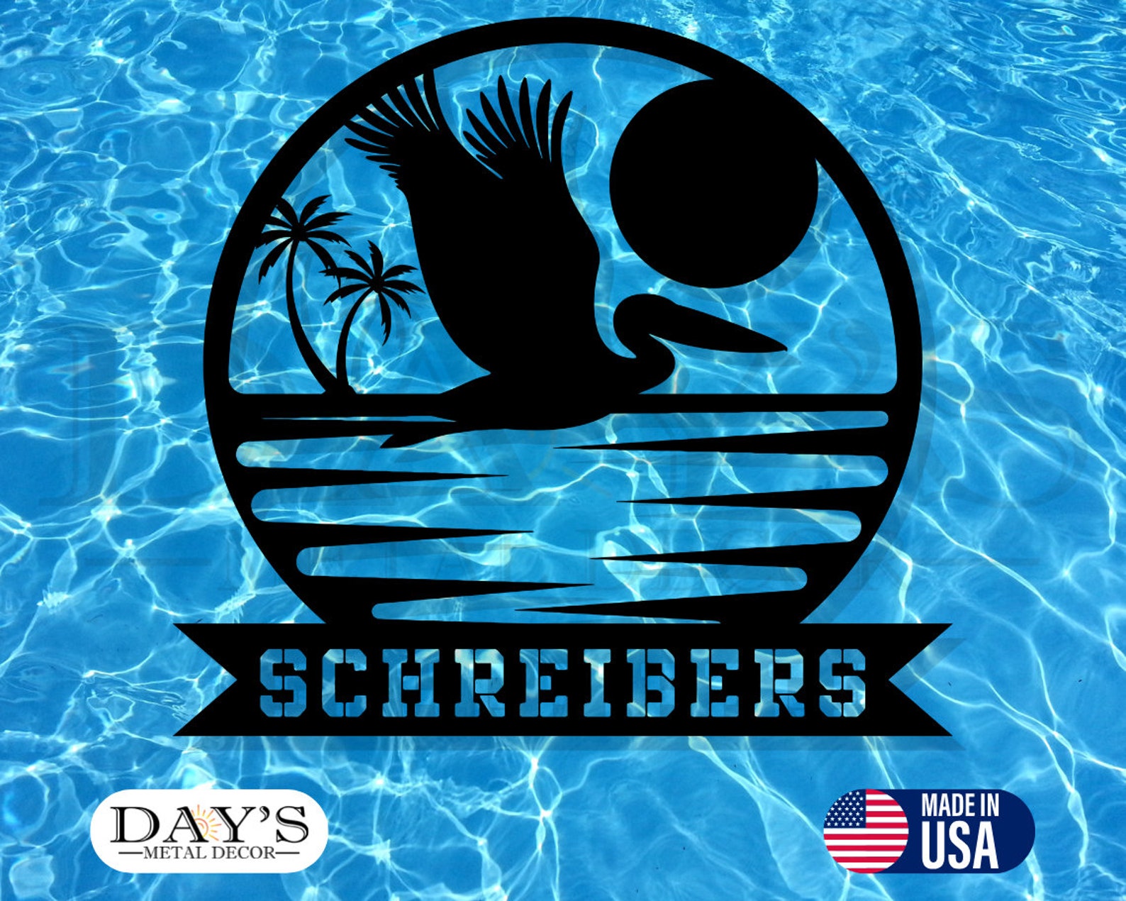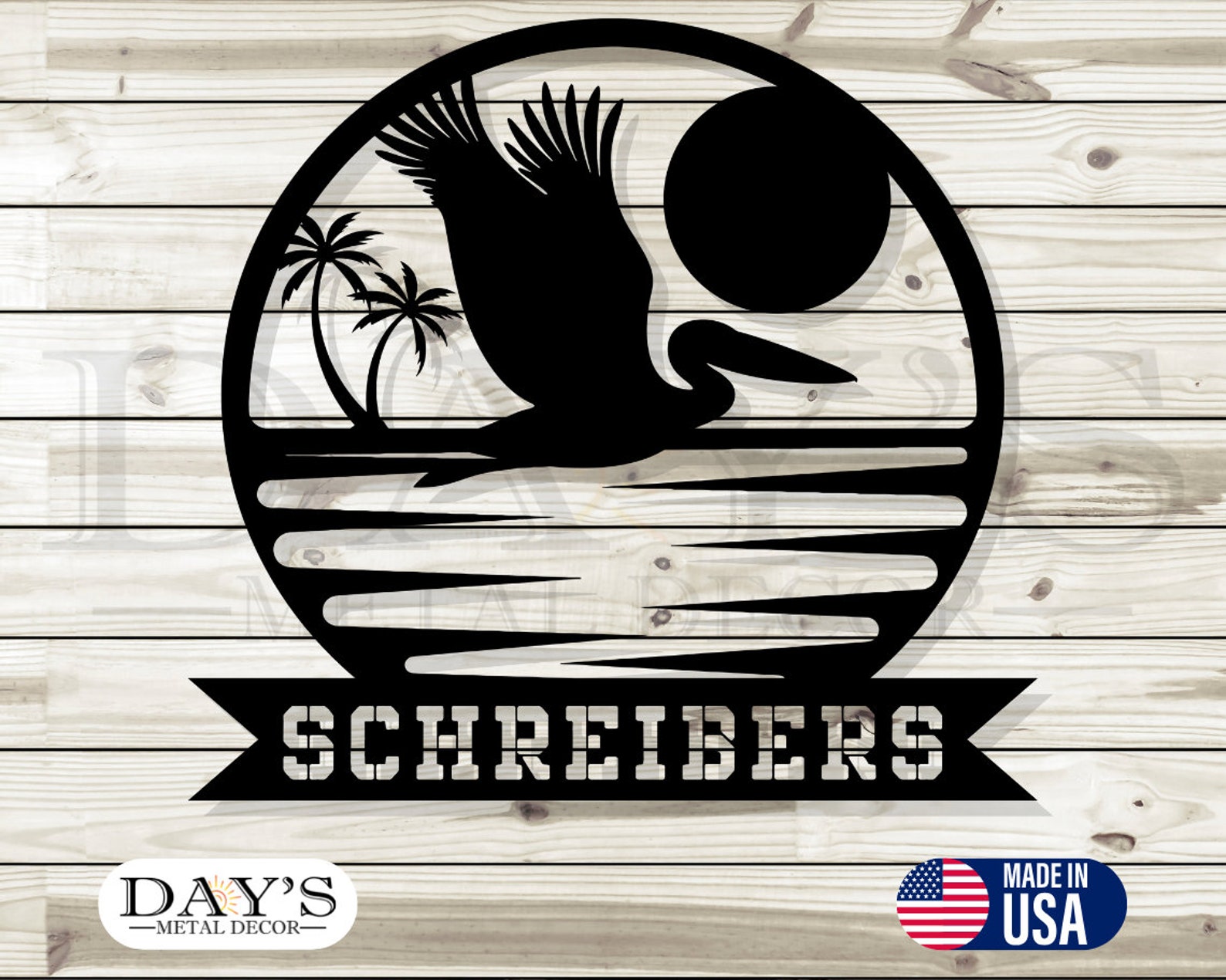 Personalized Pelican Sunset Metal Wall Art – Beach Decor, Backyard Decor