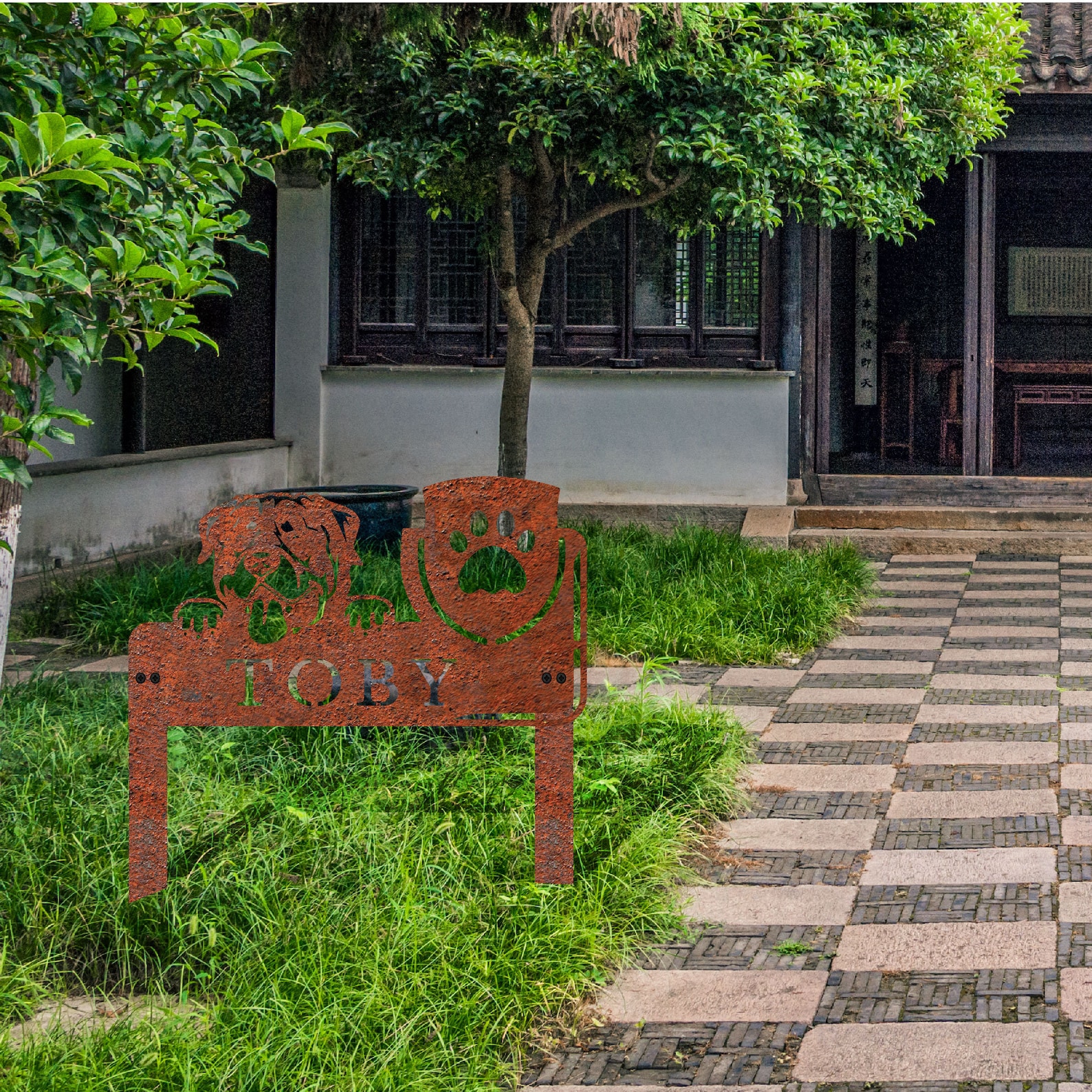 Personalized Pet Memorial Metal Sign – Paw Print Garden Stake