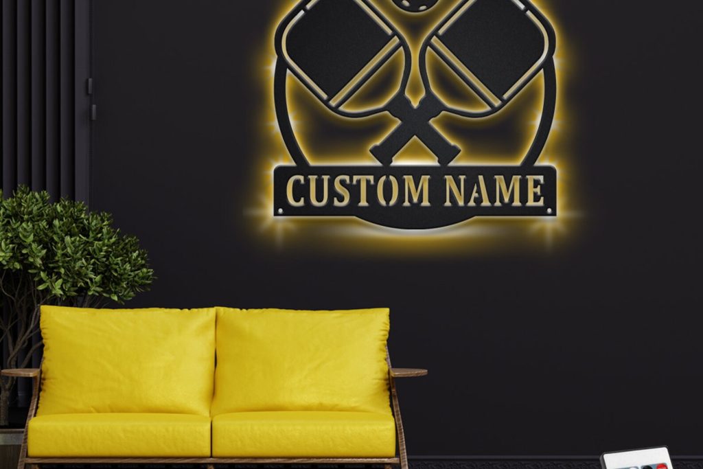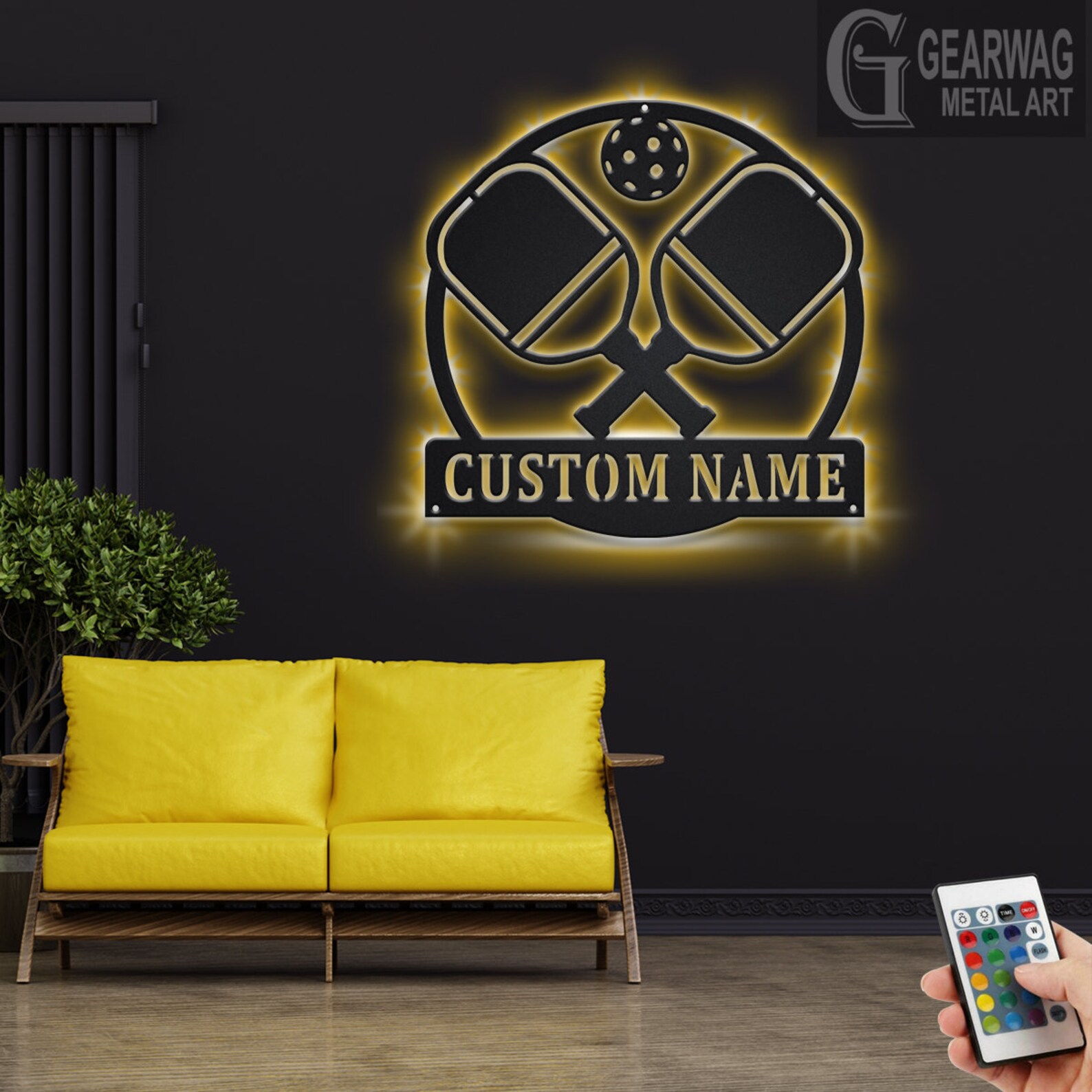 Personalized Pickleball Metal Sign, LED Light, Home Decor