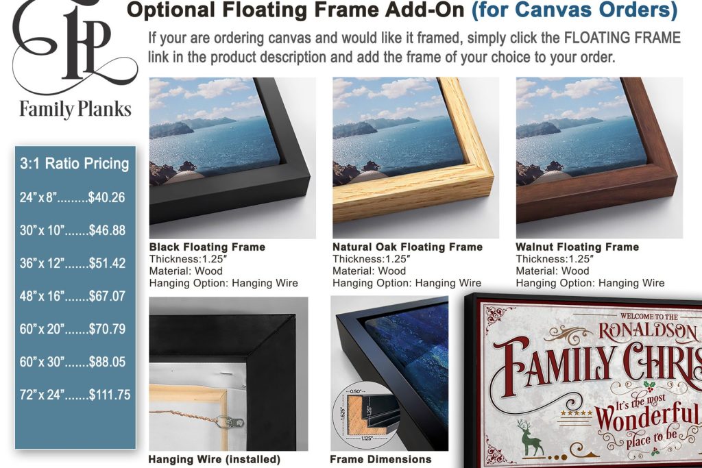 We will install a sawtooth hanger on the back of your canvas or leave it off if requested.