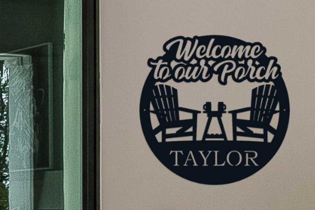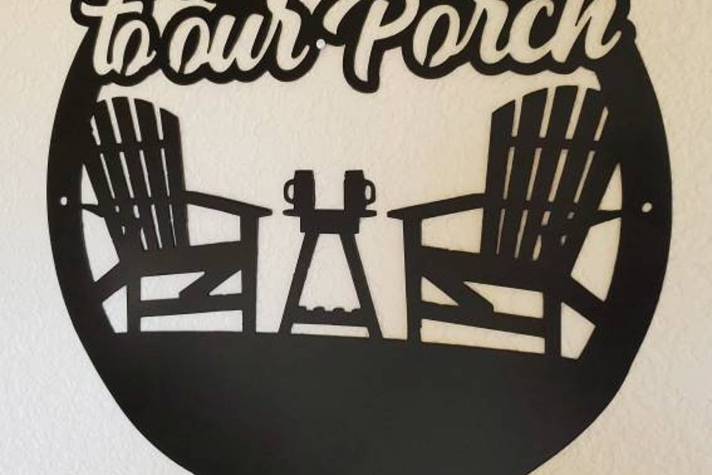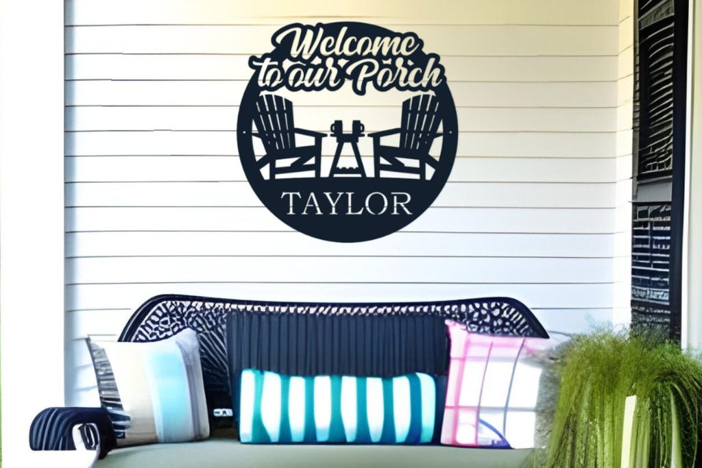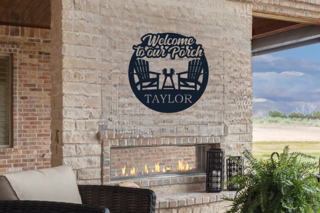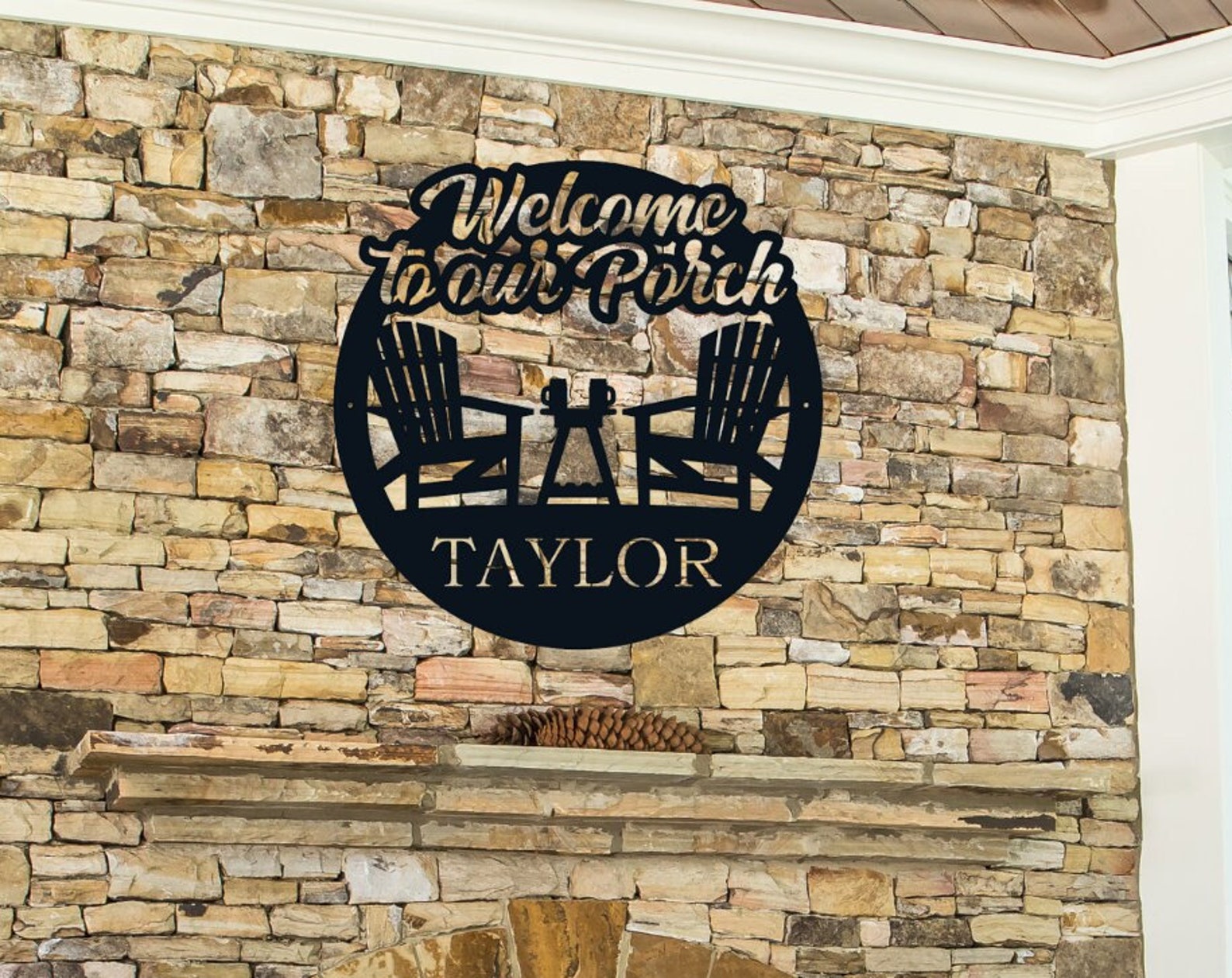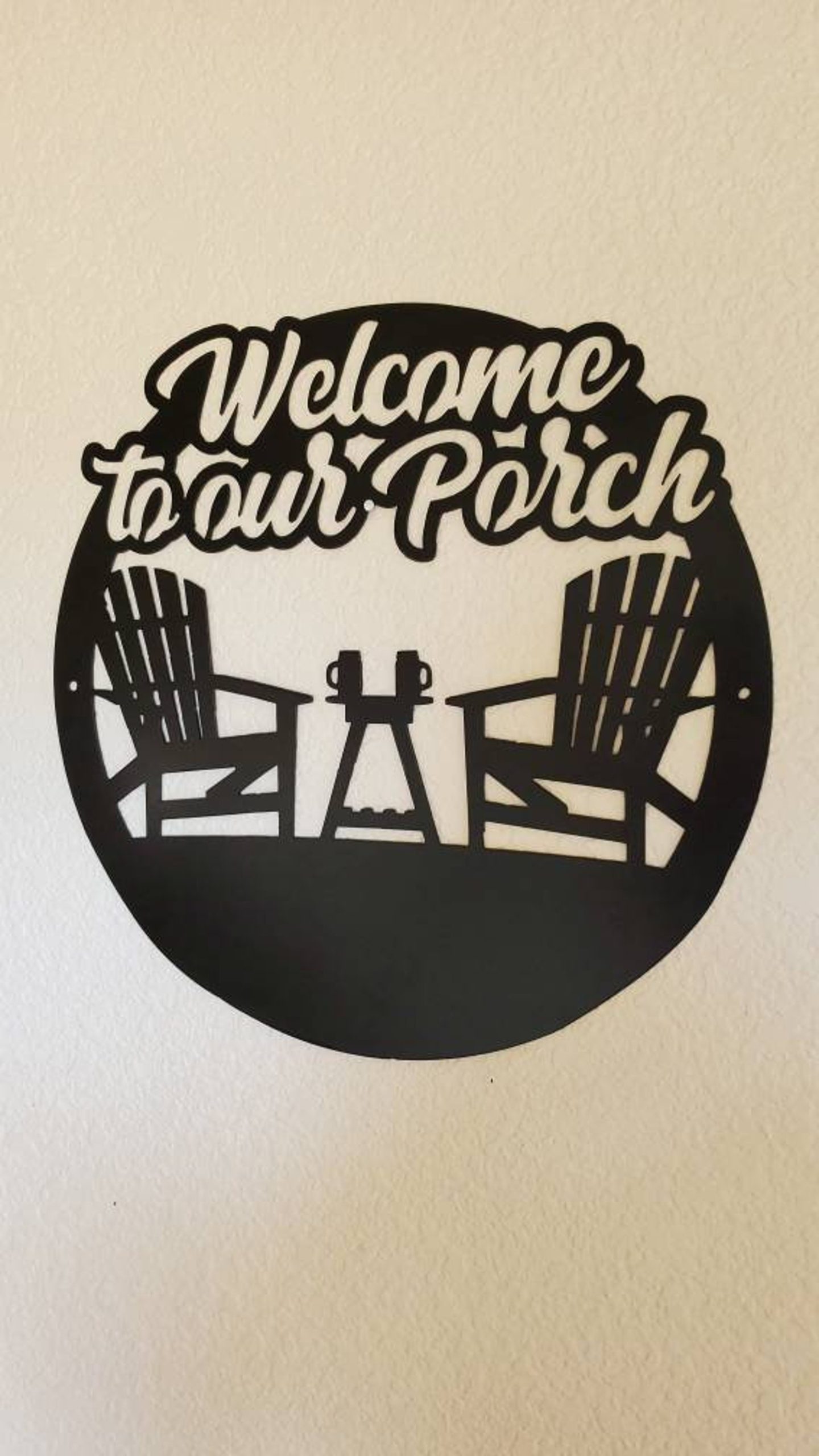 This porch sign would make a great gift for a housewarming gift, Christmas gift, birthday gift, or for any occasion. It is made out of 16-gauge metal, and it is powder coated for durability and is weather resistant. Show off your back porch with this beautiful sign!