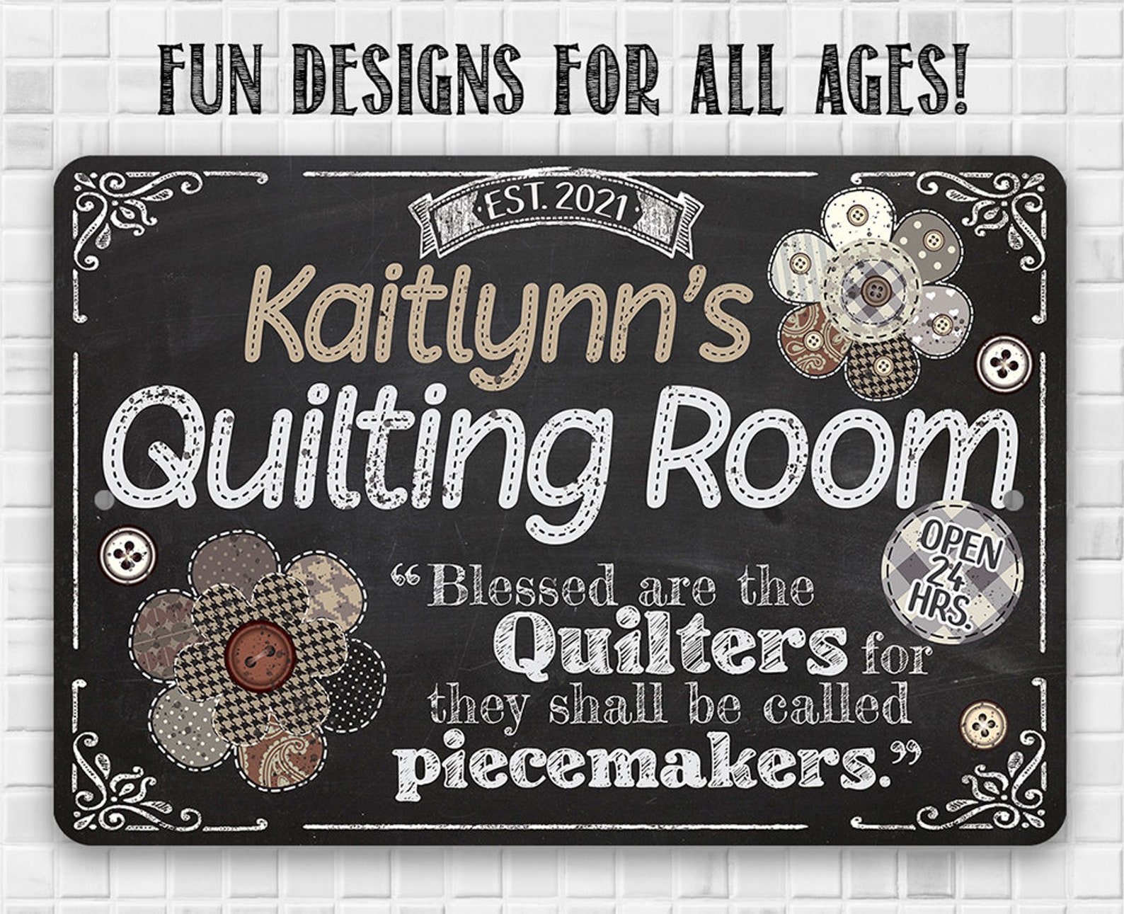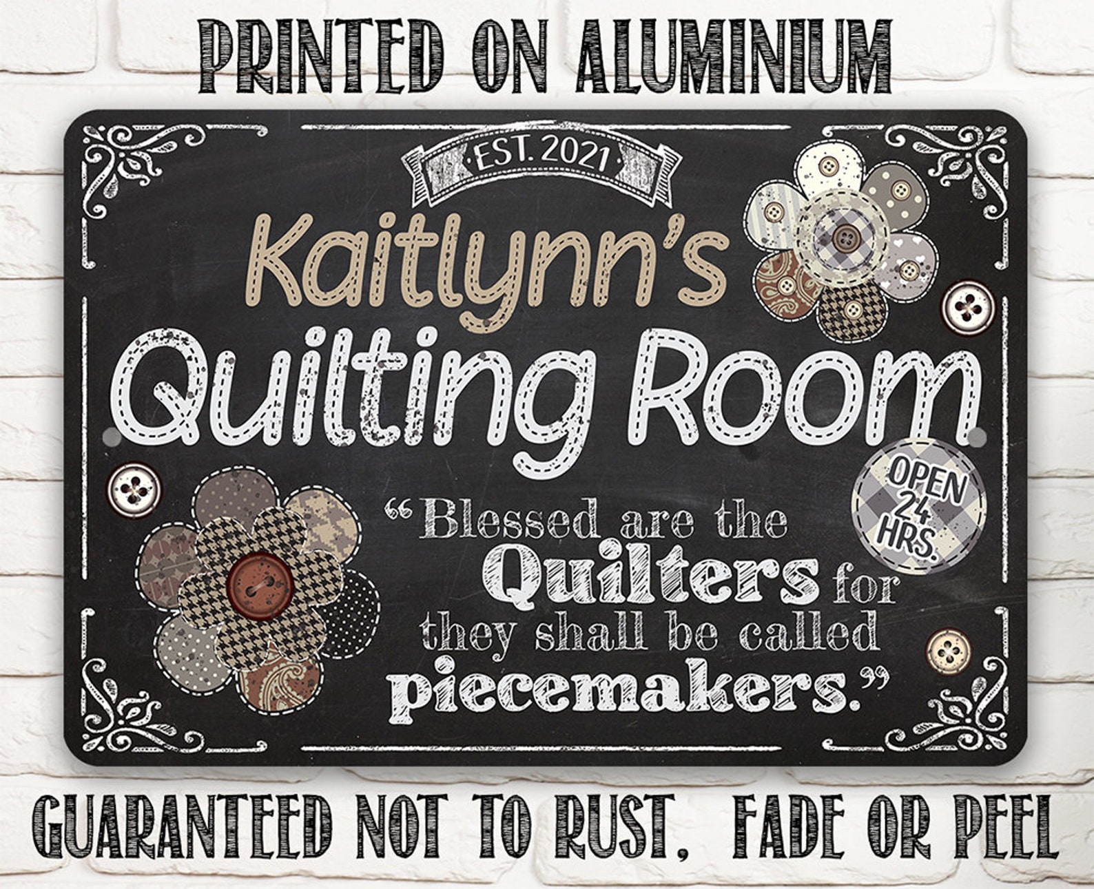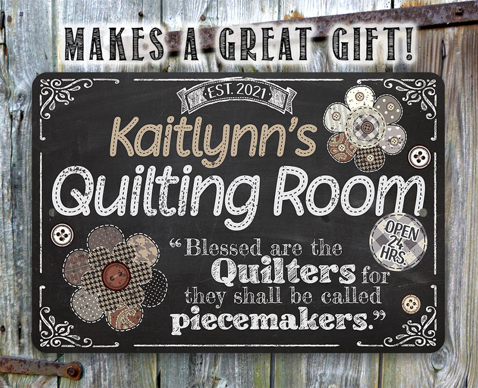 Tin – Personalized Quilting Room Metal Sign – 8" x 12" or 12" x 18" Use Indoor/Outdoor – Gift for Quilters
