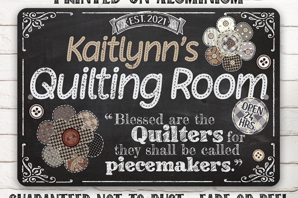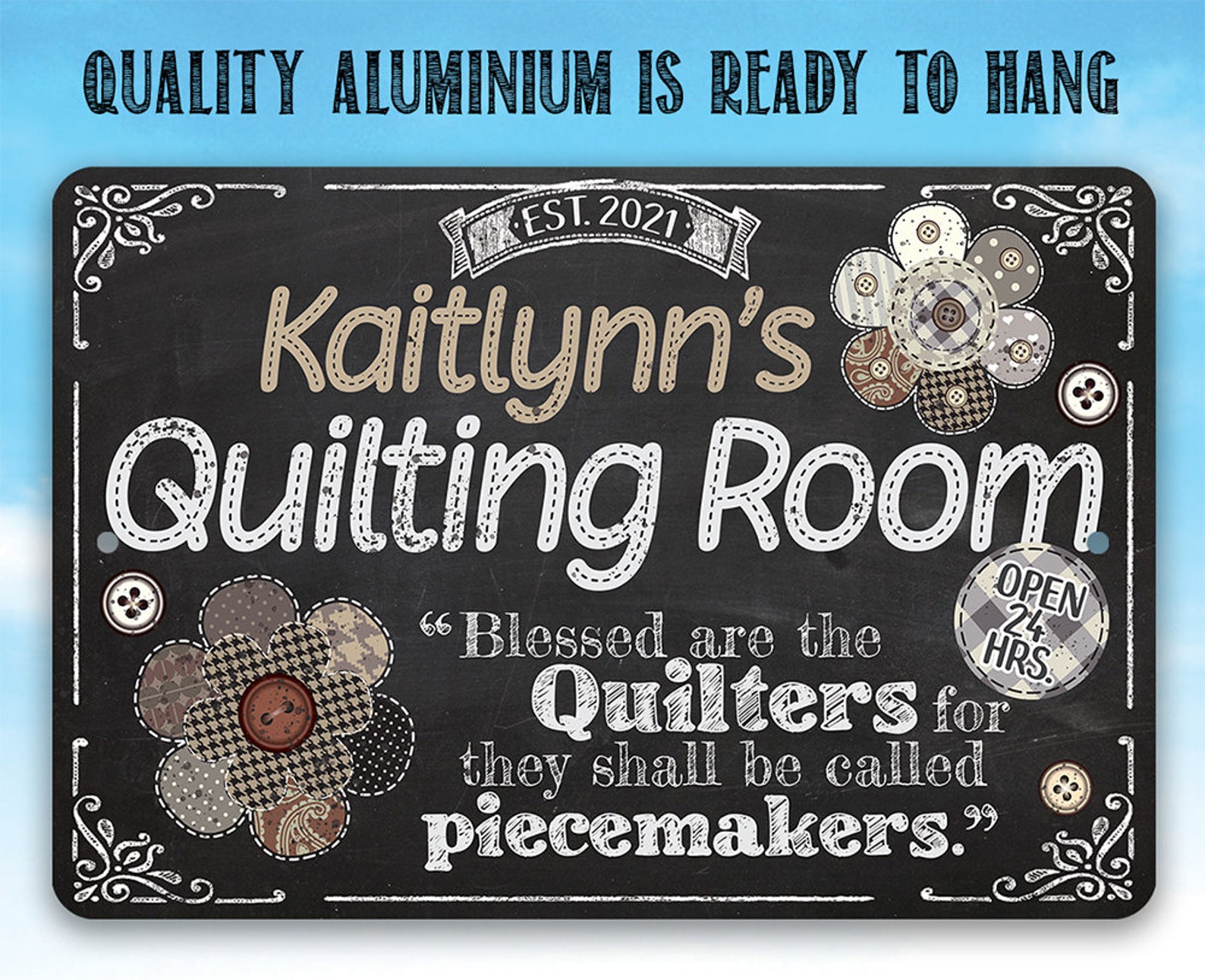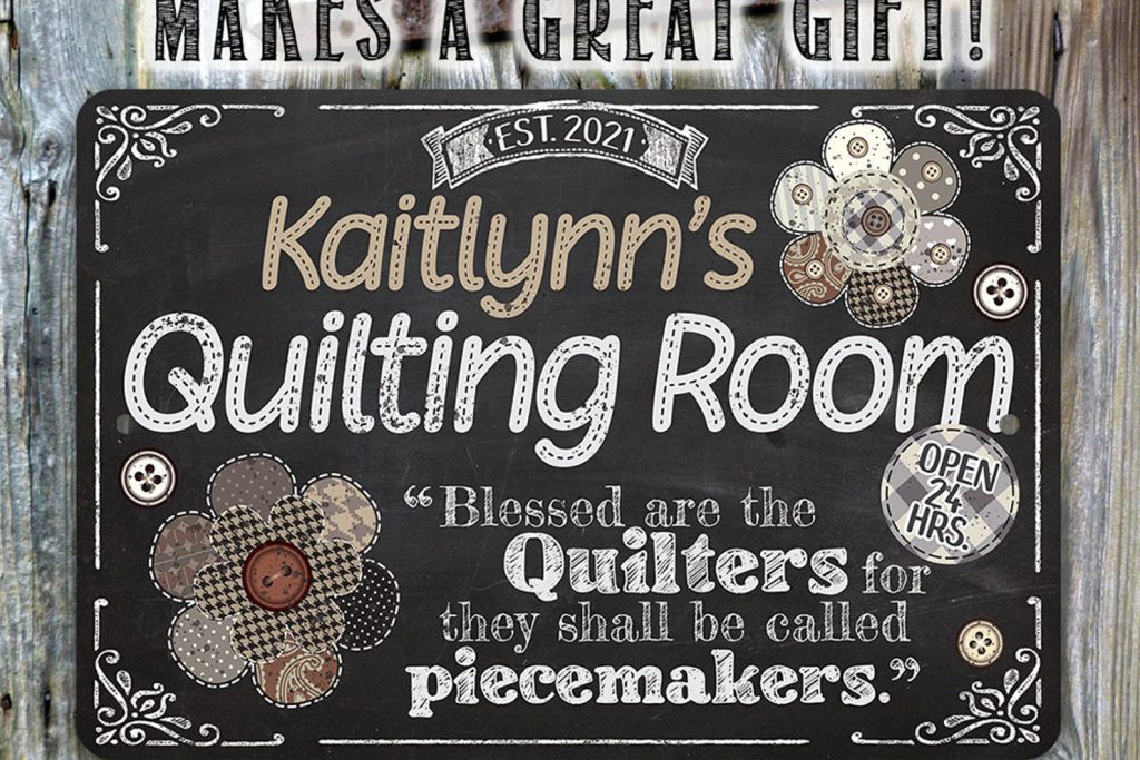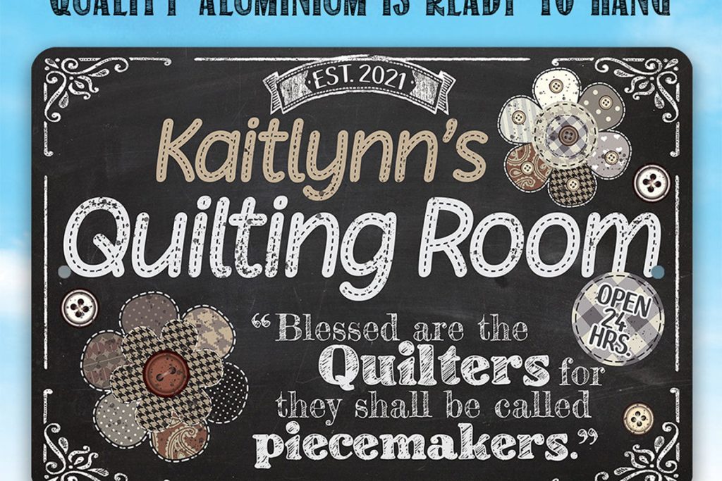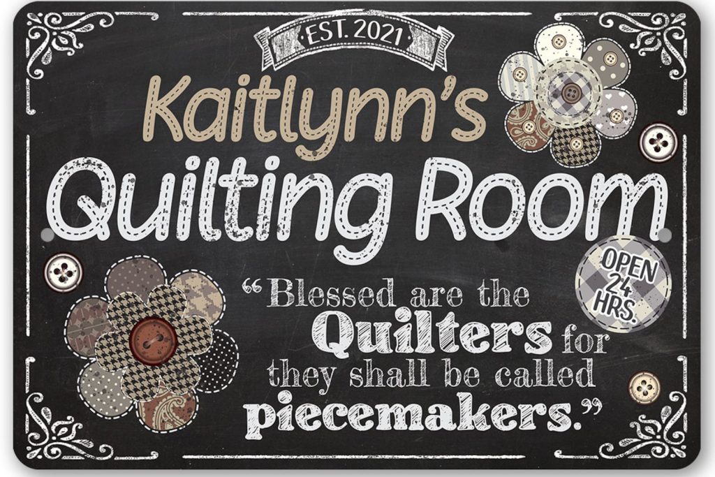 Tin – Personalized Quilting Room Metal Sign – 8" x 12" or 12" x 18" Use Indoor/Outdoor – Gift for Quilters