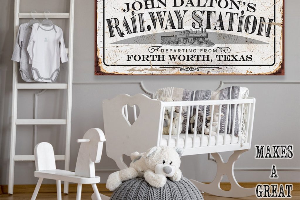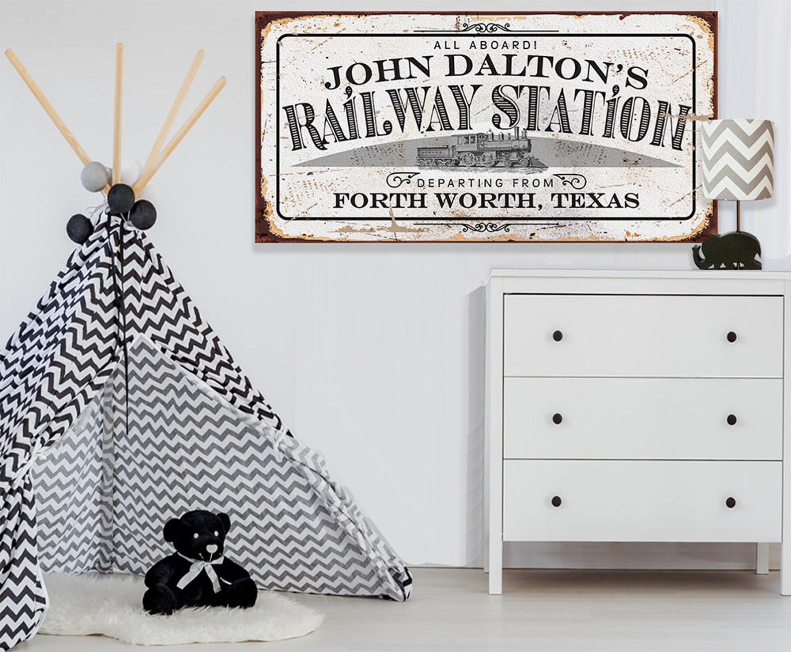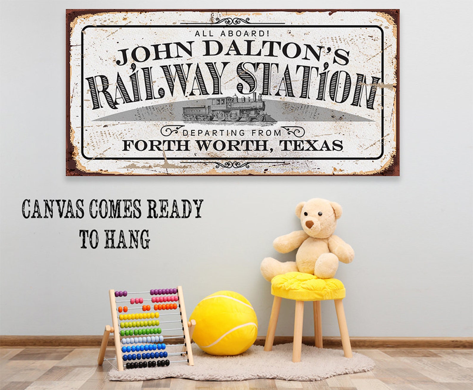 Personalized-Railway Station-Large Canvas(Not Printed on Metal) Stretched on Wood-Nursery Room Decor