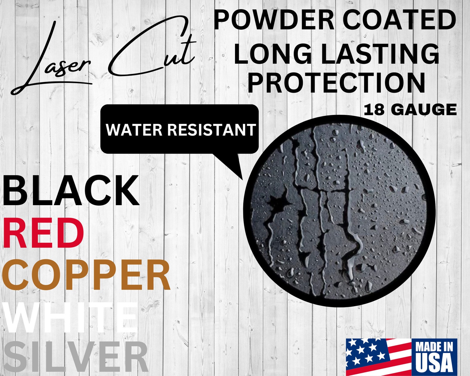 Made of 18 Gauge Steel, Laser Cut for Smooth Edges, Powder Coated for Long Lasting Protection.