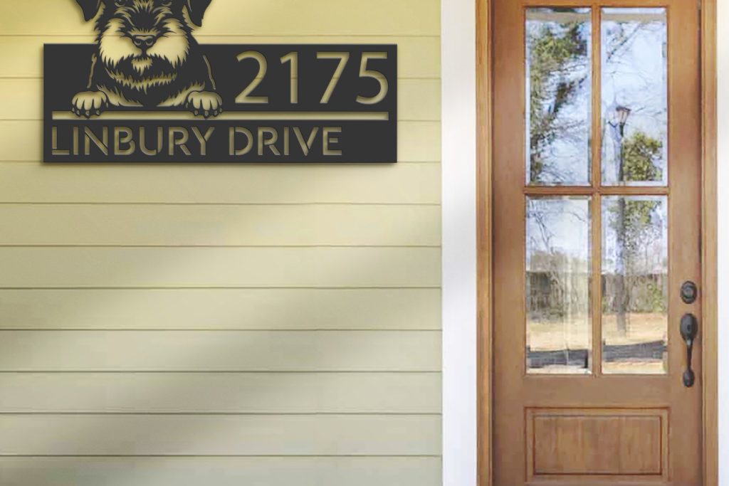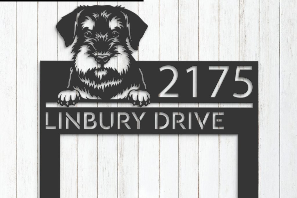 Be the first to review “Personalized Standard Schnauzer Metal Address Sign – Cute Puppy Plaque”