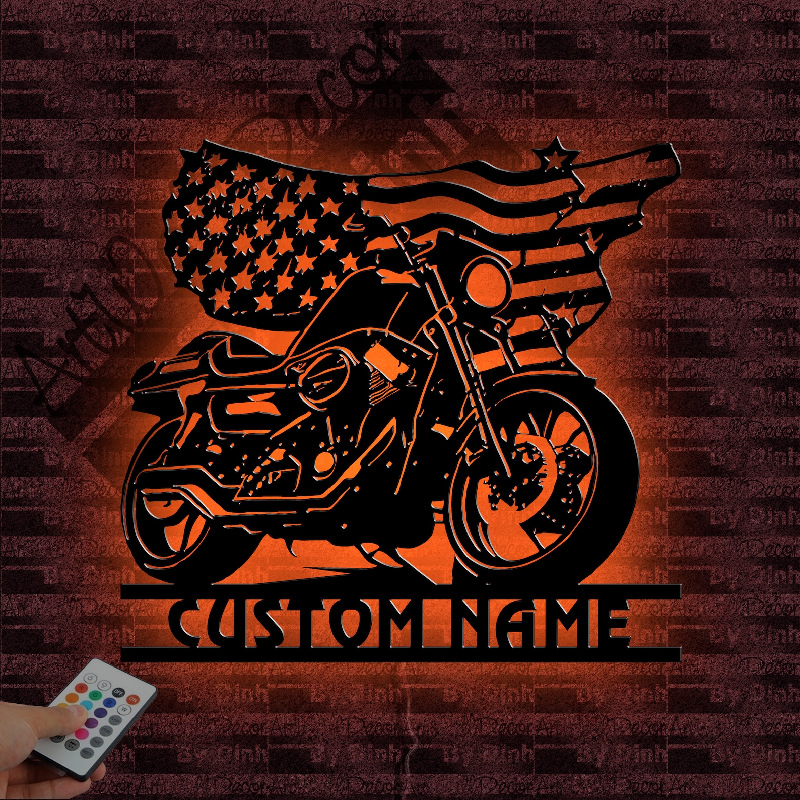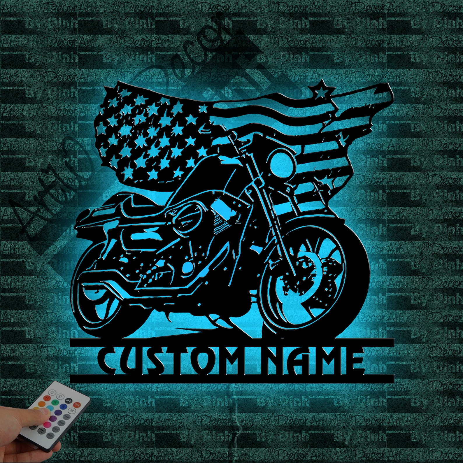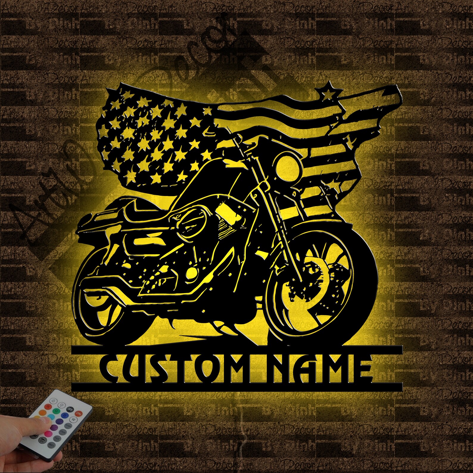 Be the first to review “Personalized US Motorcycle Metal Sign – LED Light, Motorcycle Wall Decor”