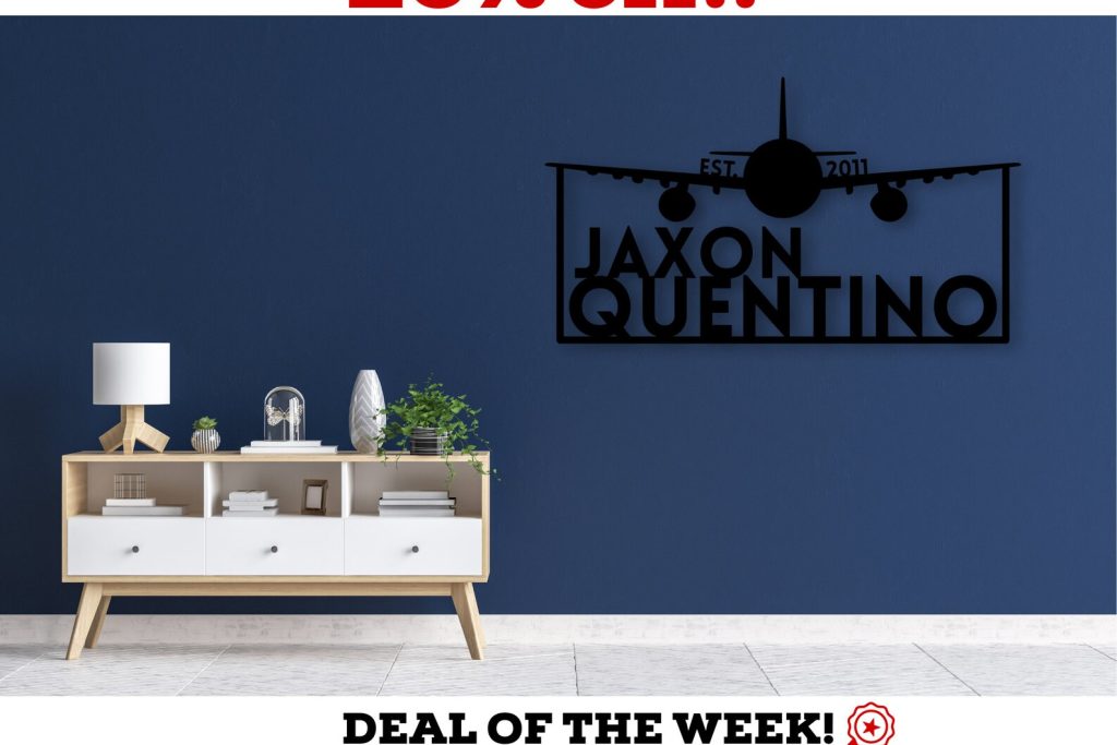 Personalized Wall Hangings – Monogram Airplane Sign, Metal Sign
