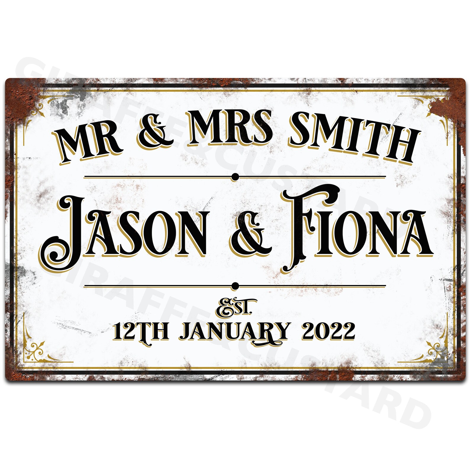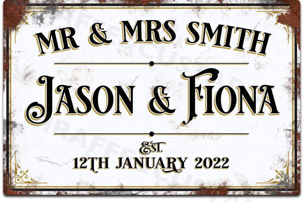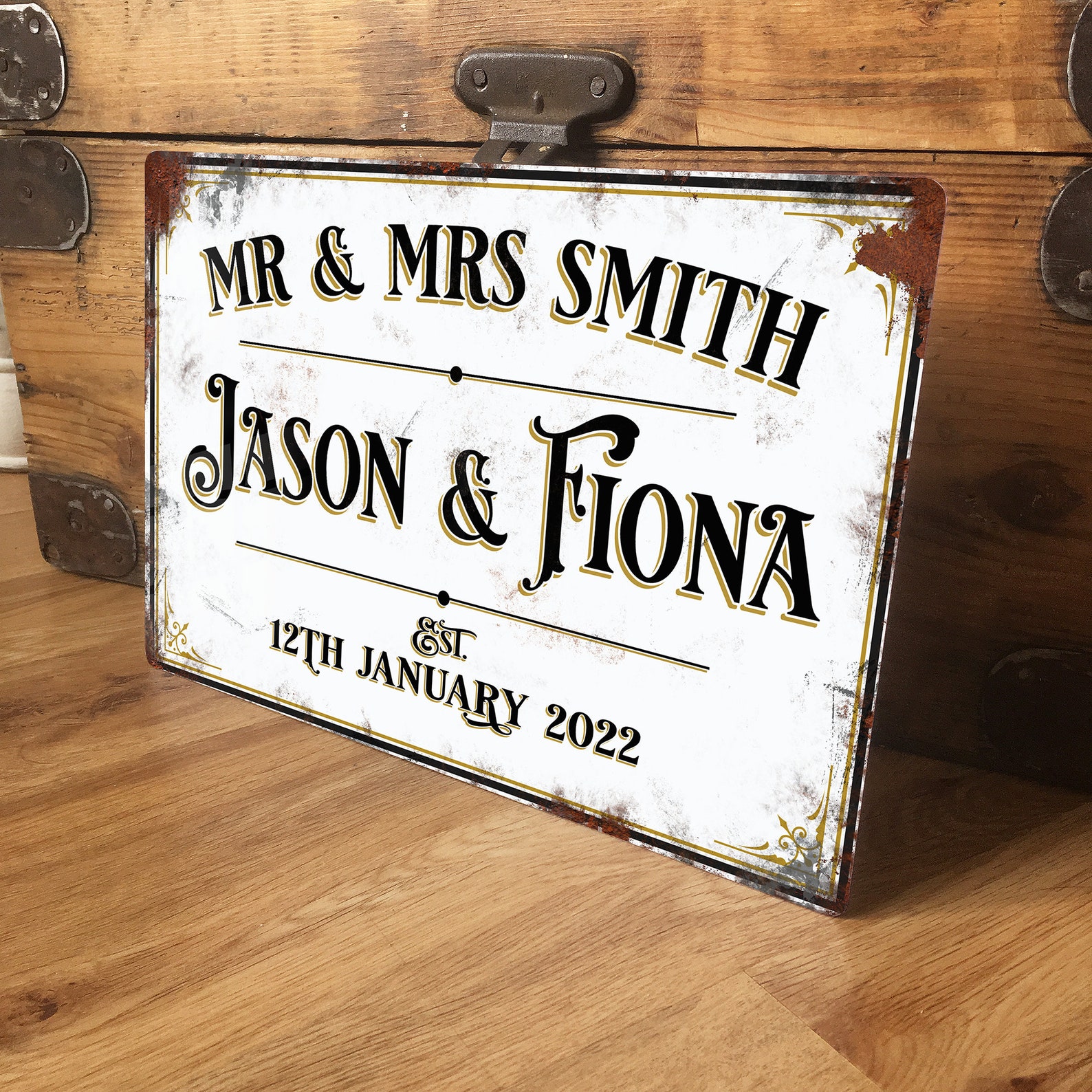 Personalised Wedding Sign Metal Wall Door Signage – Vintage Retro Tin Plaque – Waterproof A4 Aluminium – 200mm x 305mm