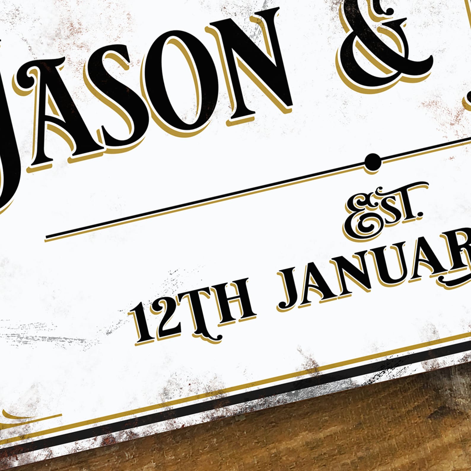 This Vintage style metal Wedding or Anniversary sign is a great gift idea for any couple on their special day or to celebrate their anniversary. Designed in Retro Classic Style, the sign is made from aluminium metal and is printed using dye sublimation inks which makes it completely waterproof. The design has been designed with the rust effect to give an aged appearance. This is not real rust. They are effects created within the artwork.