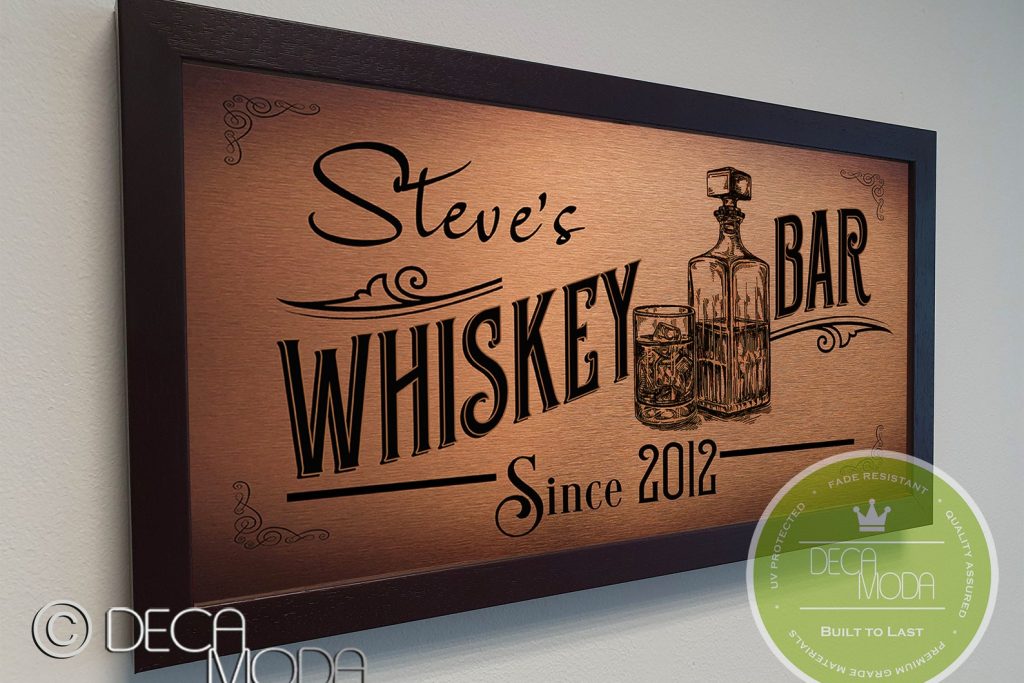 Be the first to review “Personalized Whiskey Bar Sign – Custom Metal with Wood Frame”