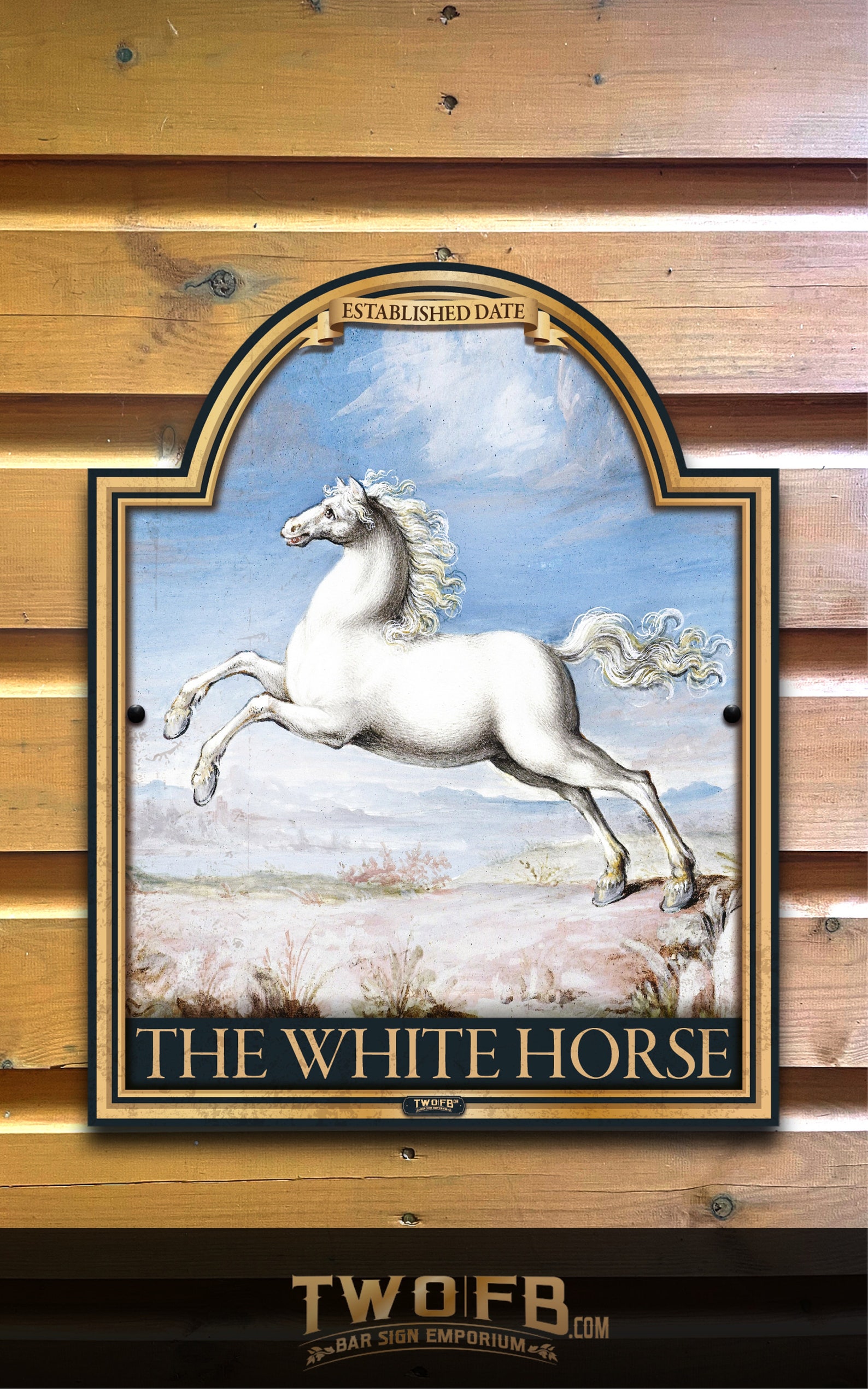 Personalized White Horse Metal Bar Sign – Swinging Decor