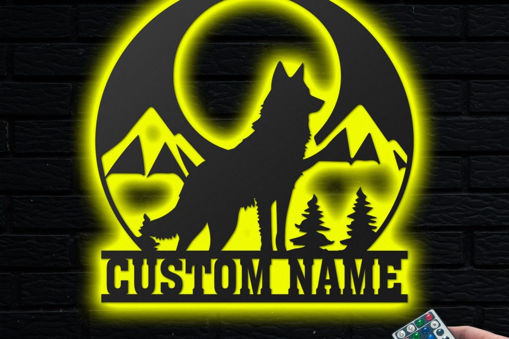 Be the first to review “Personalized Wolf in Forest Metal Sign with LED – Nursery Decor”