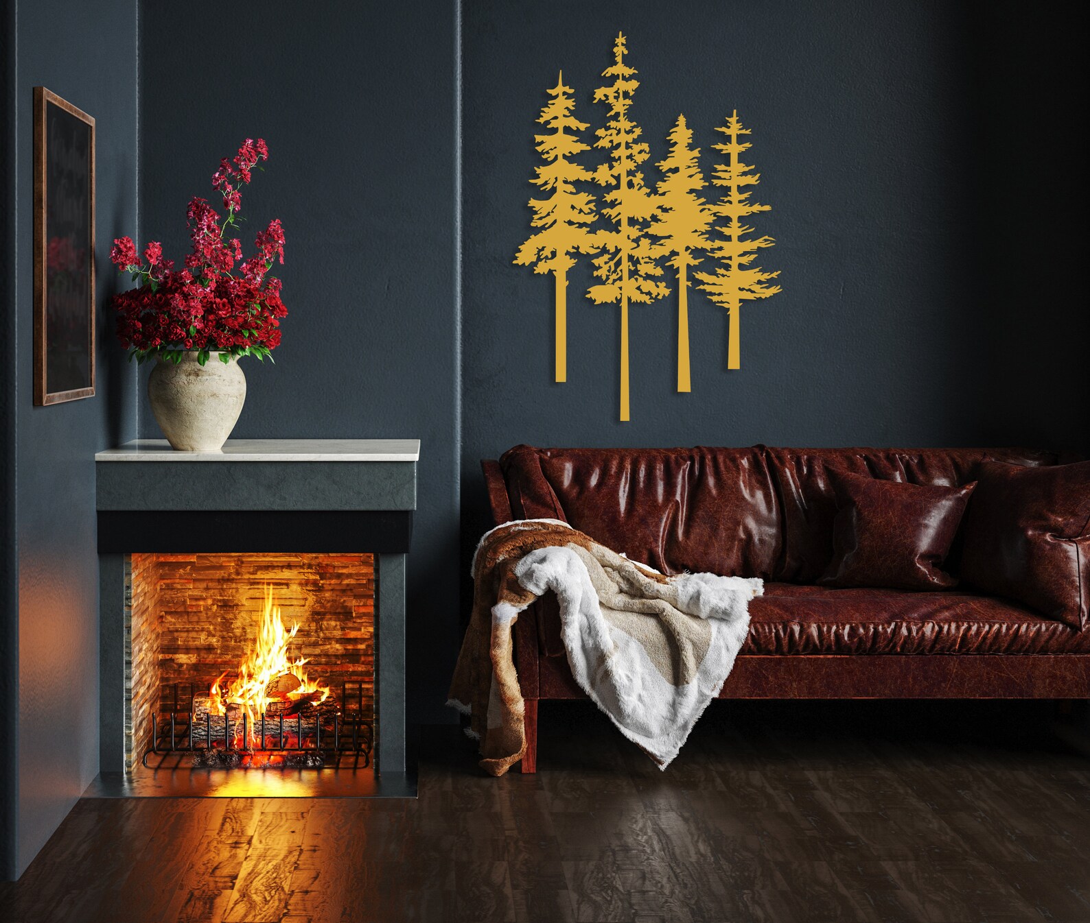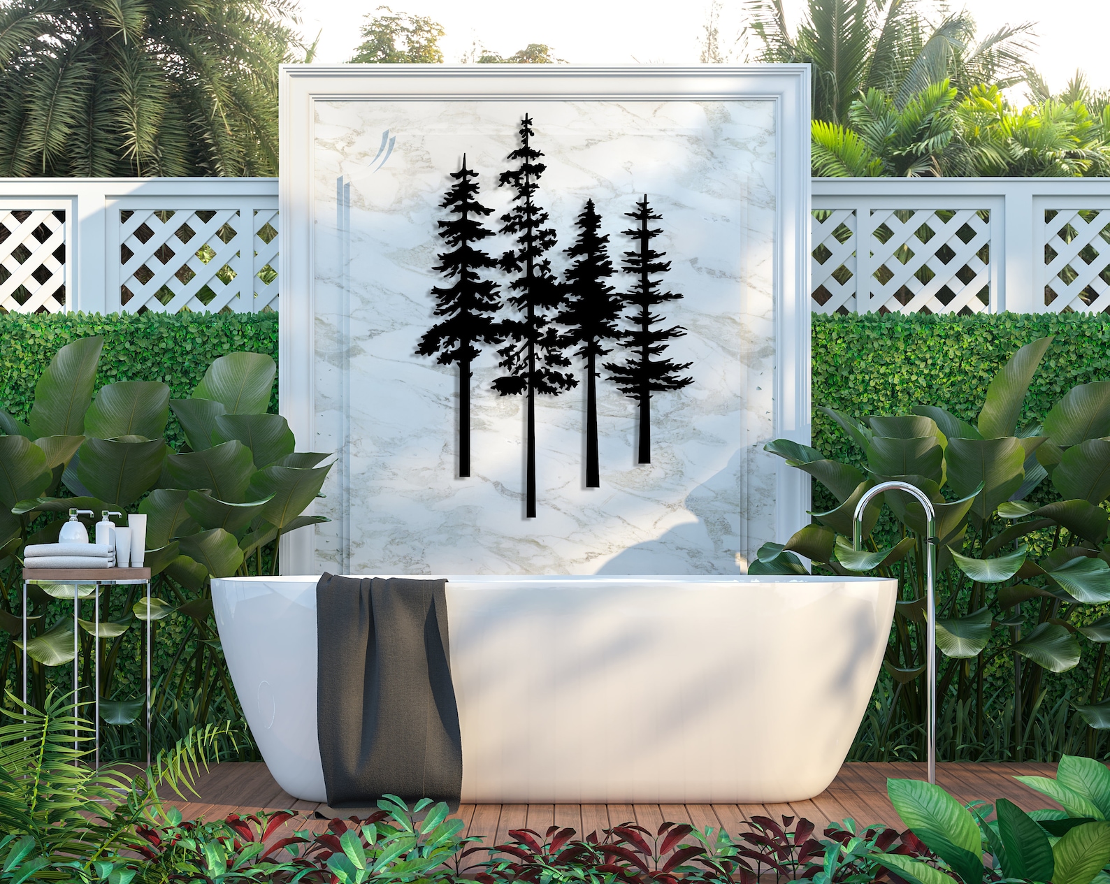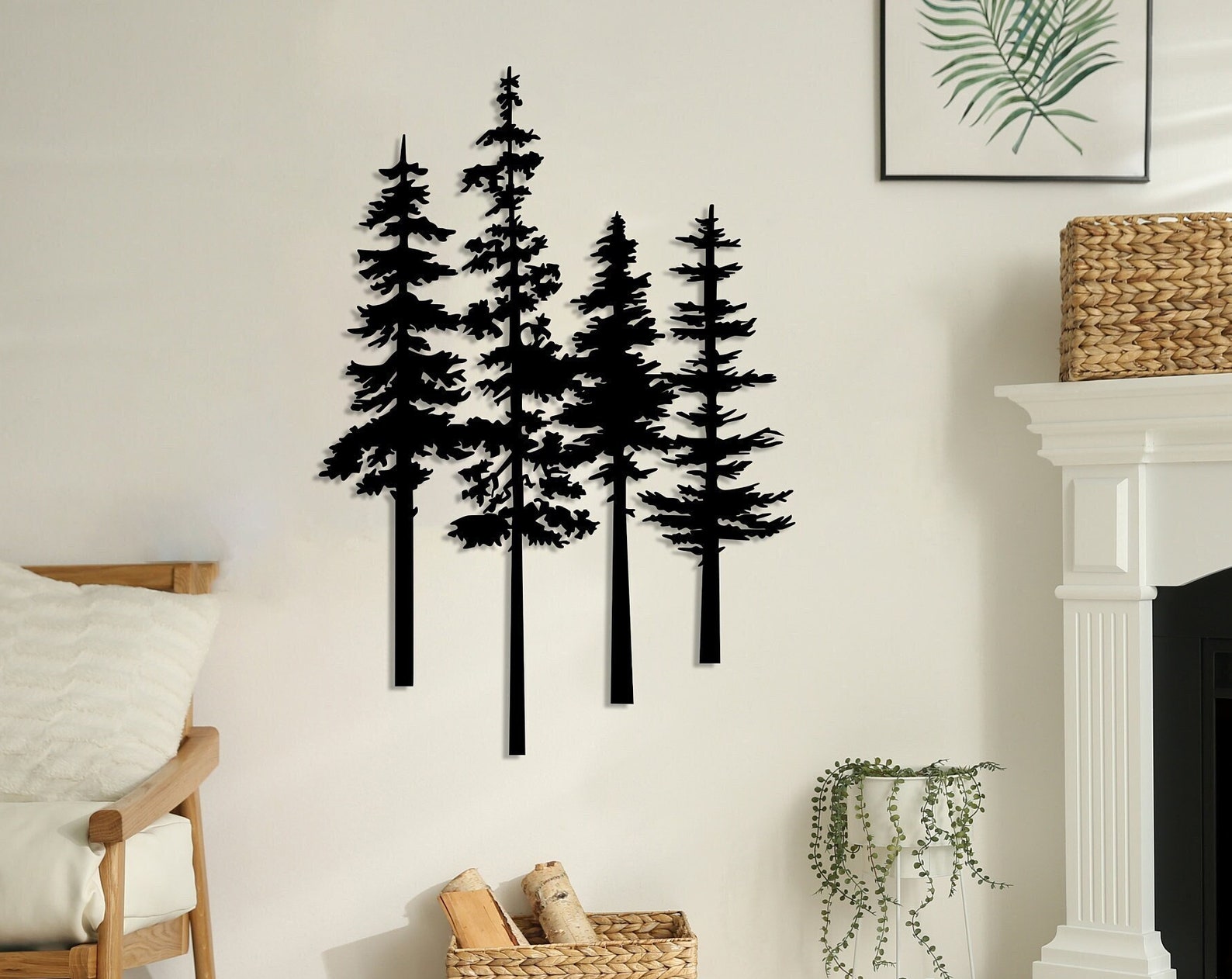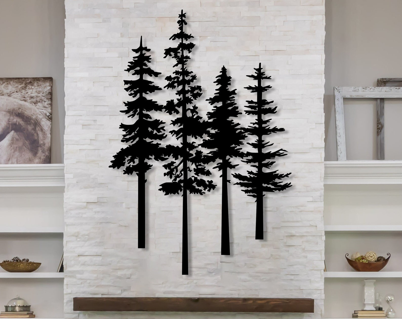 Pine Tree Metal Wall Art Set of 4, Tree Decor Wall Hanging, Tree Sign Home Decor, Large Outdoor Wall Art, Nature Lover Gift, Unique Home Decor