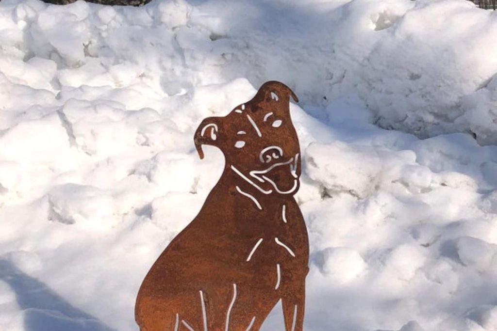 This handcrafted rustic metal American Pit Bull Garden Stake or Wall Hanging will become a decorative favorite. A charming way to add some fun to your home, garden or lawn decor.