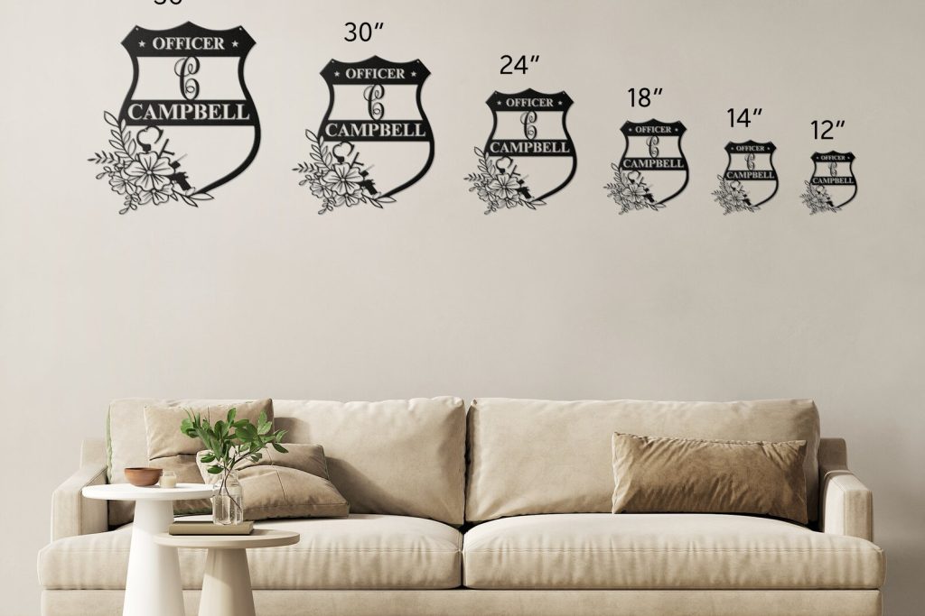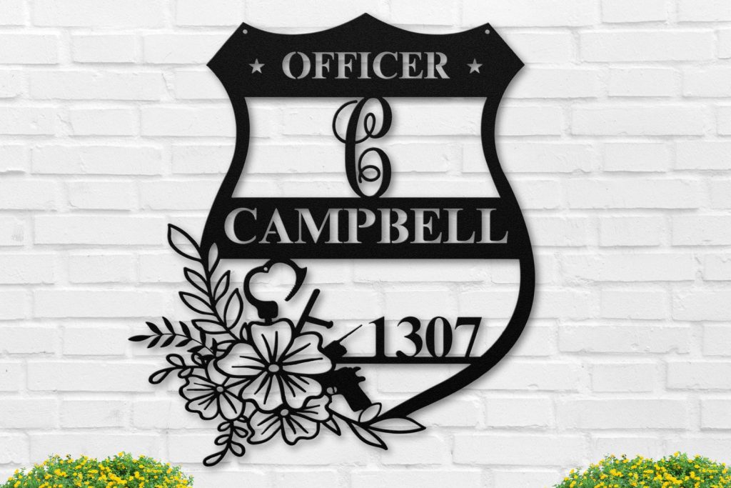 Introducing our personalized police badge metal sign for home or outdoor decor! Crafted with care, this metal wall art piece is the perfect gift for police officers and a great addition to any space. Show your appreciation for the men in blue with our police officer gifts for men collection. The intricate design features a police badge on metal, adding a touch of authenticity to your decor. Surprise your loved one with this thoughtful present, or bring a piece of the force into your own home. Ideal for Father9;s Day, birthdays, or special occasions, our metal sign police badge will make a lasting impression. Order now and celebrate the bravery and dedication of our everyday heroes!