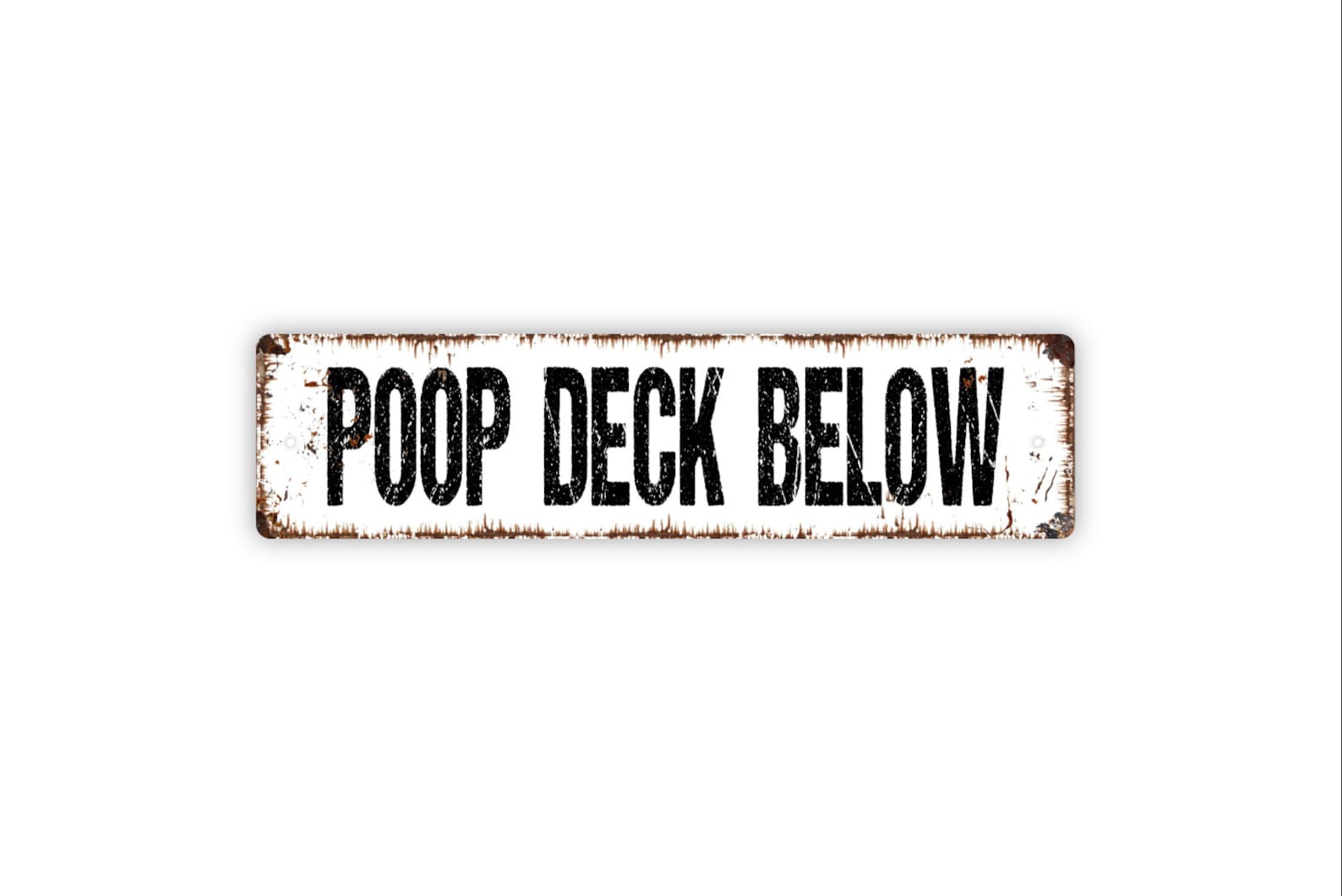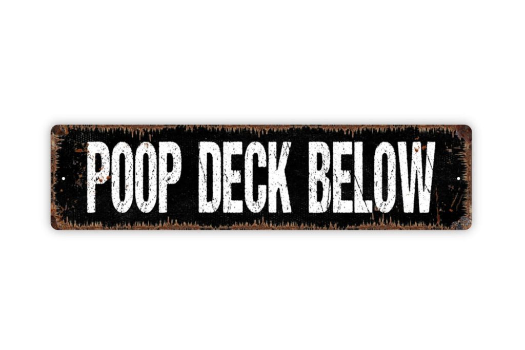 Poop Deck Below Sign – Bathroom Restroom Nautical Metal Sign