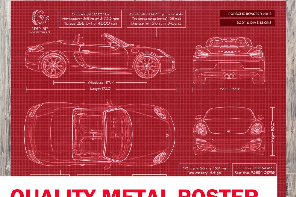 Be the first to review “Porsche Boxster 981 S Blueprint Metal Art”