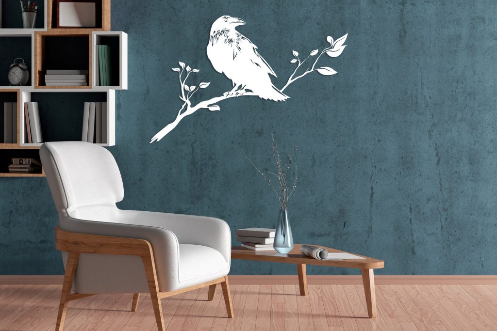 Raven on Branch Wall Decor, Metal Crow Wall Art, Birds Sign Art, Bird Metal Wall Decor, Living Room Sacred Interior Decor, Unique Home Decor