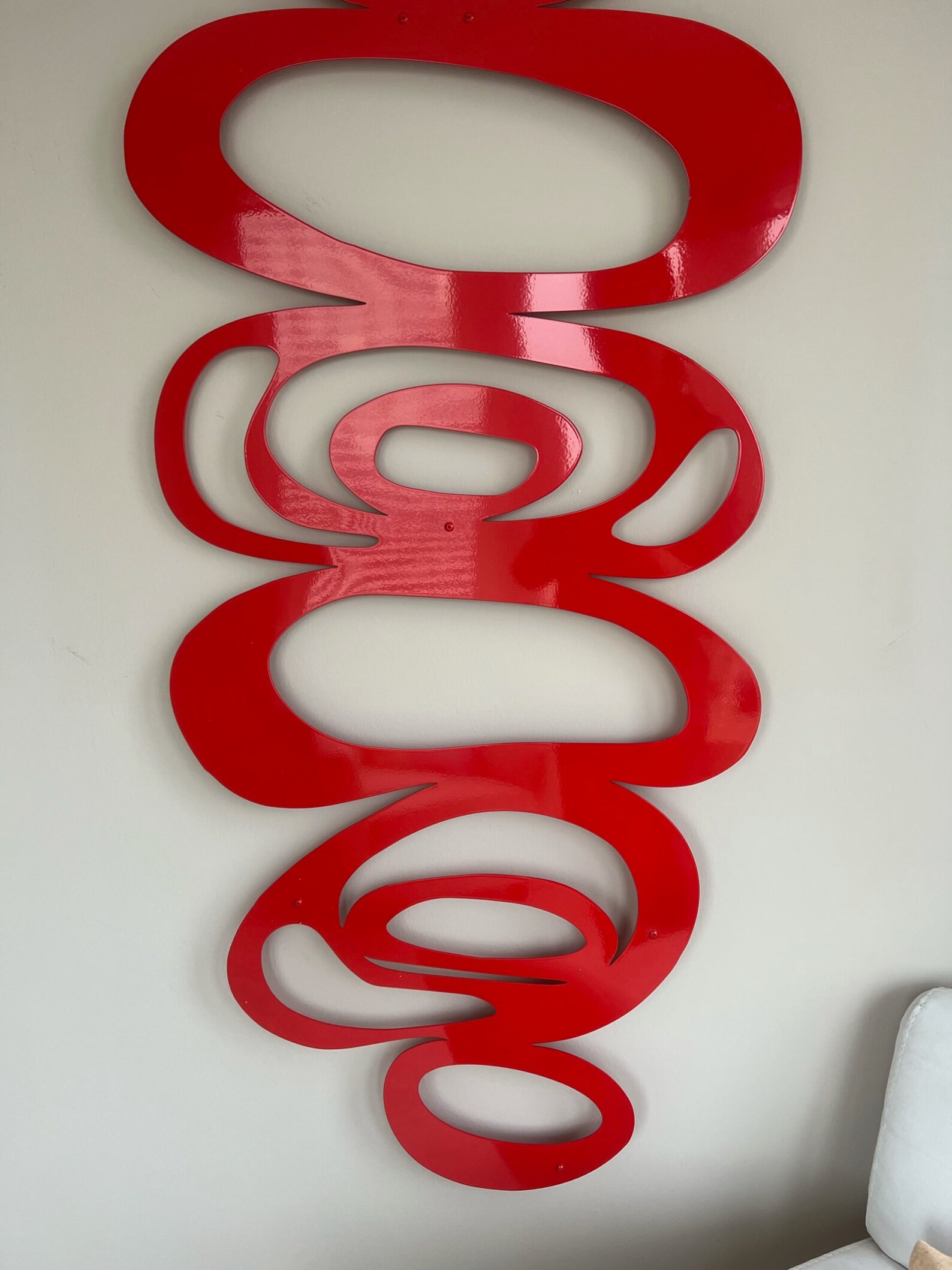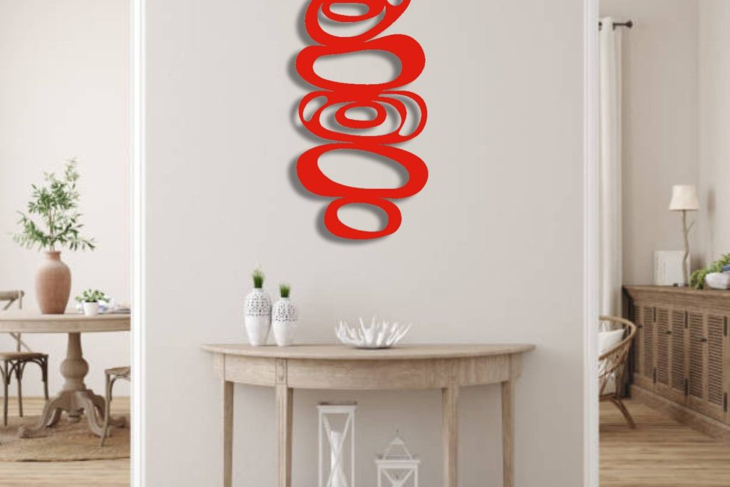 This metal wall art a best gift idea.You may give this metal wall hanging as wall decoration present on many occasion, for example you may bring it to your mother,your new married friend as wedding gift or best friend as housewarming gift who recently buy a new house or who redecorate her home,your corporate gift for your collegue.This design of one of our abstract geometric wall decor collection may be named as geometric red metal wall decor,contemporary red metal wall decor,nordic wall decor,metal scandinavian wall decor,archer wall decor, red metal bubble sign for wall,geometric red metal sign for wall deco,modern colorful wall decor,red metal vertical wall hanging,vivid wall decor,office vivid wall decor,colorful office decor idea,coffee shopred metal wall decor,restaurant red wall decor,yoga studio red metal wall decor,hotel wall decor, interior red wall design,artitecture wall idea, office gift for coprorate,hair dresser wall decor, colorful wall design,glossy red metal wall hanging