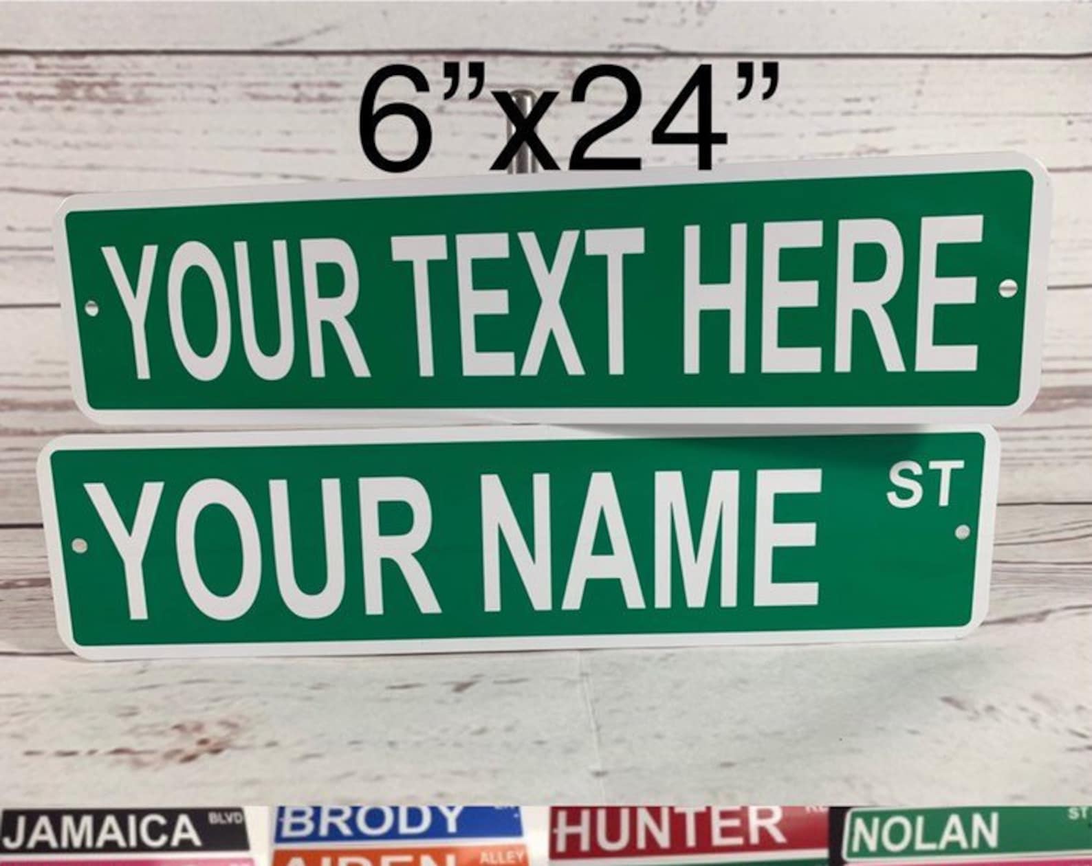Made to order Custom Metal Sign Measures 6"x9"x.040" and made from .040" thick aluminum metal. Larger sized custom metal signs are available in the drop down menu. We have been Hand Making our Custom metal signs for 17+ years, with a trusted name and quality materials. Our Metal signs are for Indoor or Outdoor use. They will NOT rust. Metal Signs comes with rounded corners and mounting holes predrilled for easy hanging! If you prefer NO holes in your metal sign, please let us know in additional notes. Please Include your "custom text" choice or vehicle make & model in the additional notes section during checkout. (Please No logos or images at this time)