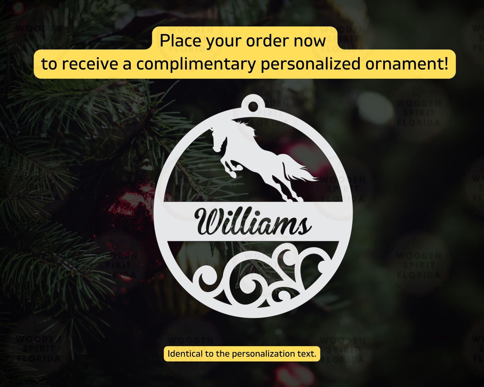 Complement your purchase with a FREE ornament, tailored to match the personalized text of your order.