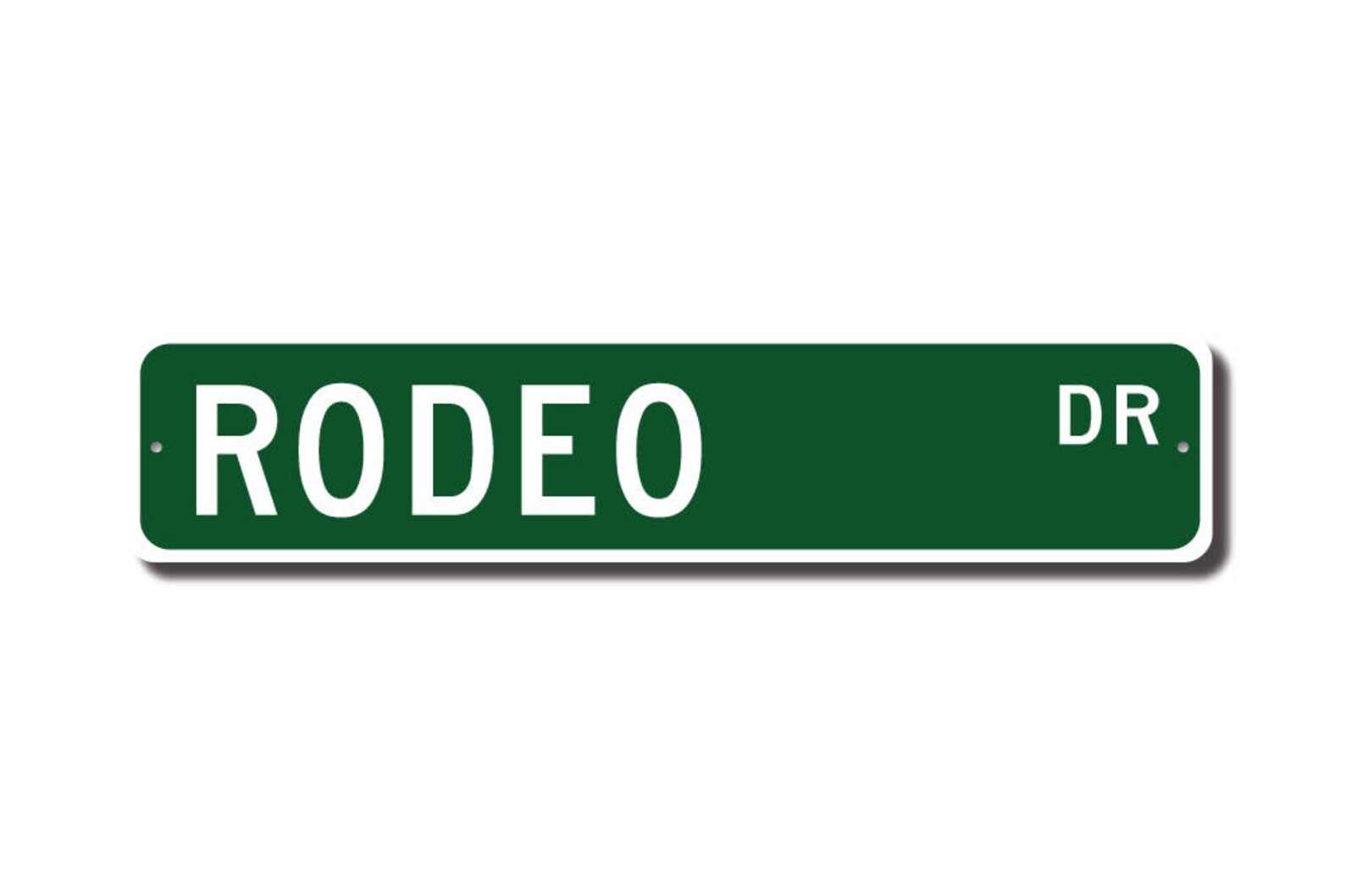 Rodeo lovers check out this awesome street sign! This will make the perfect piece for any Rodeo fan, or maybe you are a Rodeo lover looking for a cool decor piece ! Made of premium aluminum it will stand the test of time. This sign will look great in any room, home den, cave, or office ! Get this sign for your favorite Rodeo aficionado !