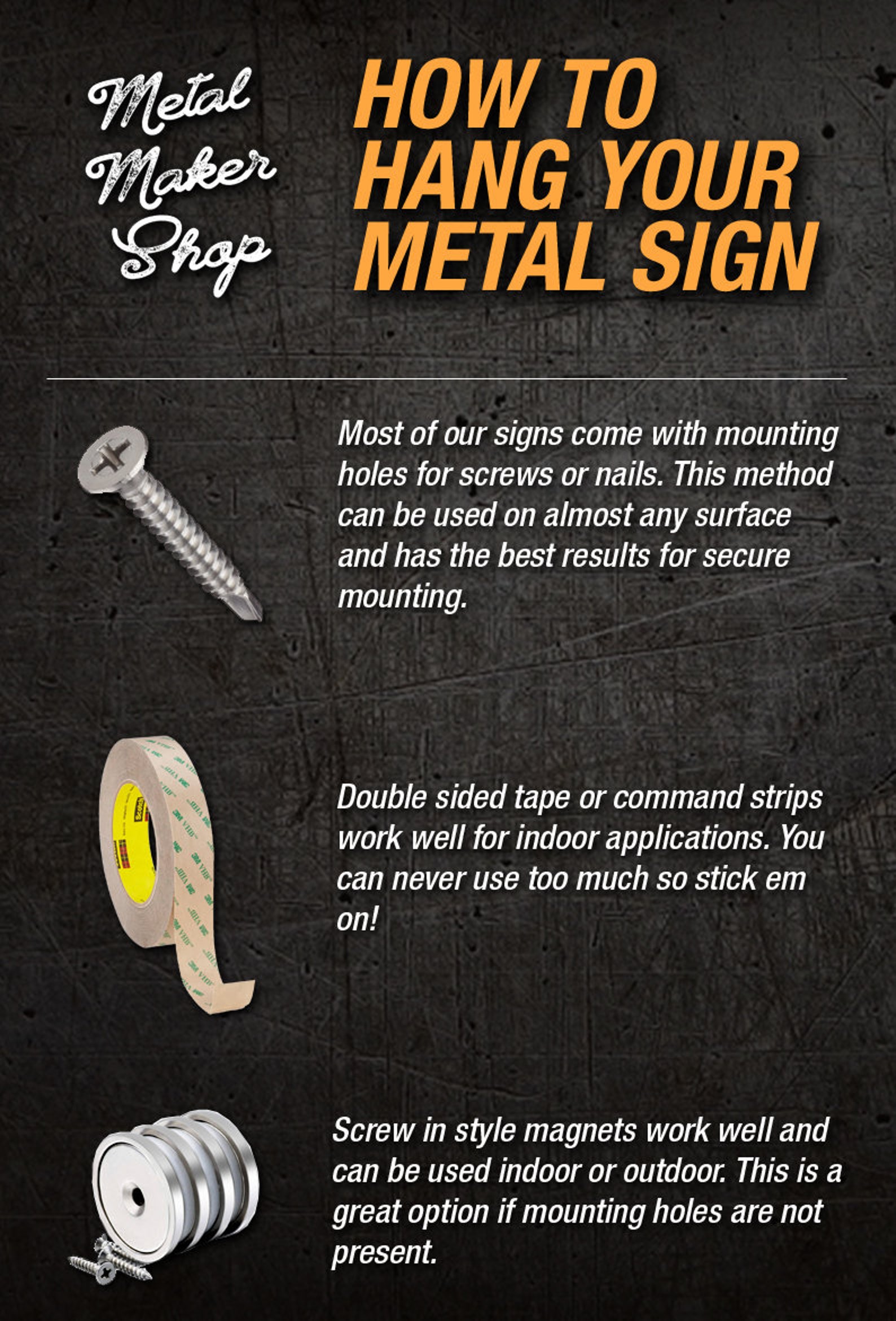Holes are added to signs for easy hanging, you can use finish nails, screws, or heavy duty double sided tape. We do offer .5 risers and screws for mounting, which can be found in our listings.