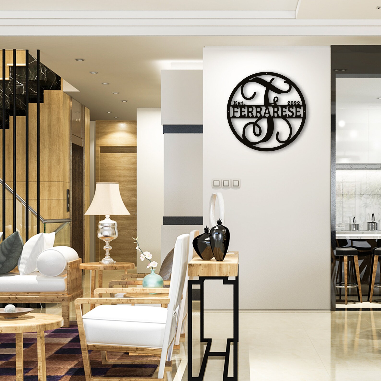 Be the first to review “Round Split Initial Monogram Metal Sign – Customizable With Last Name & EST Date”