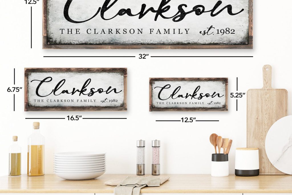 1. From the drop down menu under Size," choose your desired sign size: 4" x 12", 6" x 16", or 12" x 31" and whether or not you would like your sign framed (optional) with rustic, reclaimed barn wood.