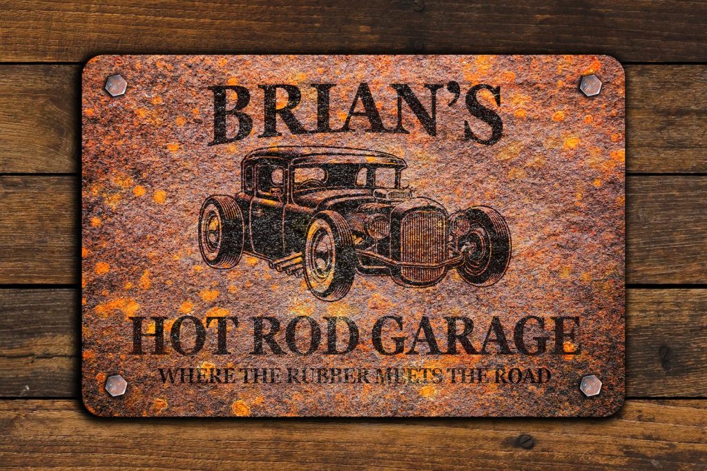 Rusty Hot Rod Sign – Custom Metal Garage Decor
