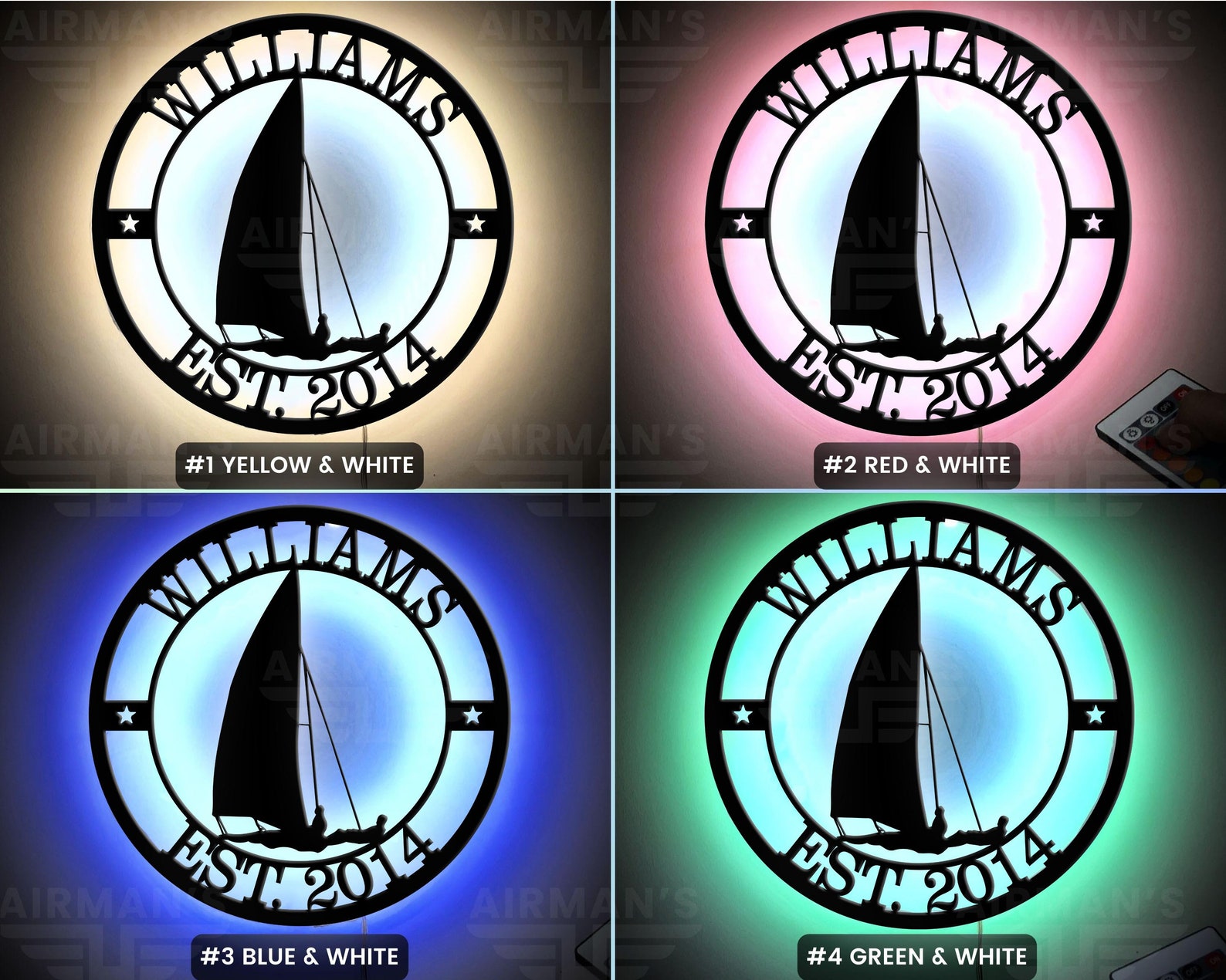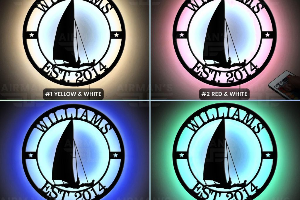Sailboat LED Sign, Personalized Nautical Wall Art