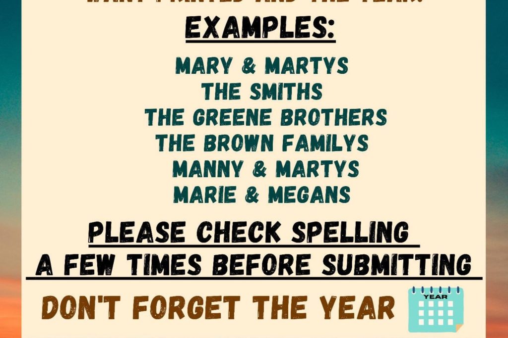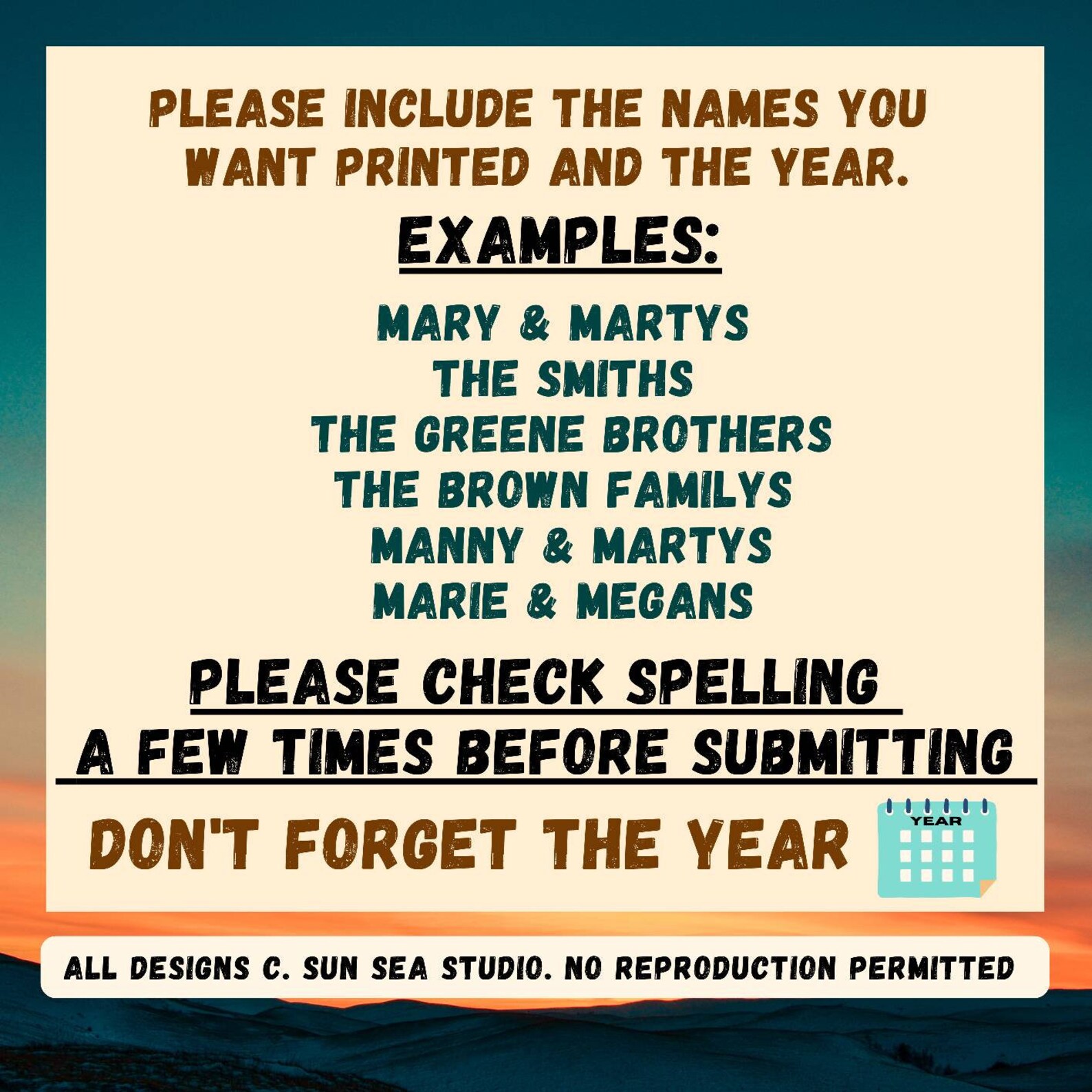 *PLEASE CHECK SPELLING. NO REFUNDS WILL GIVEN DUE TO MISSPELLED NAMES UNLESS IT WAS AN ERROR ON MY END.*