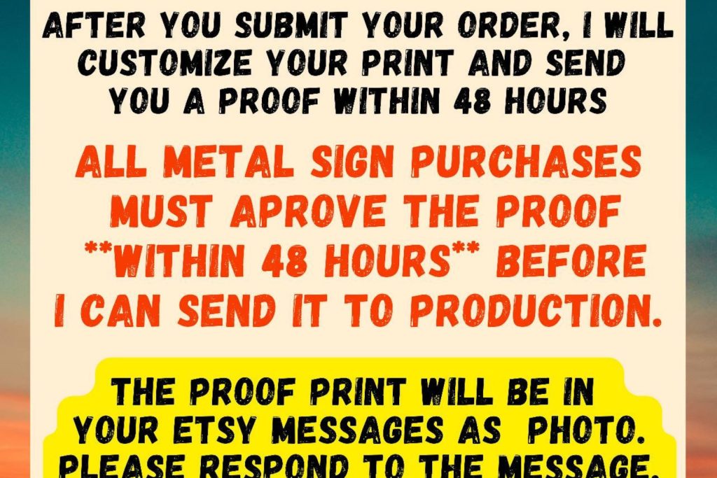 Welcome to Sun Sea Studio. This is a Customized Printed Metal Sign created by Stacy, the owner of Sun Sea Studio.