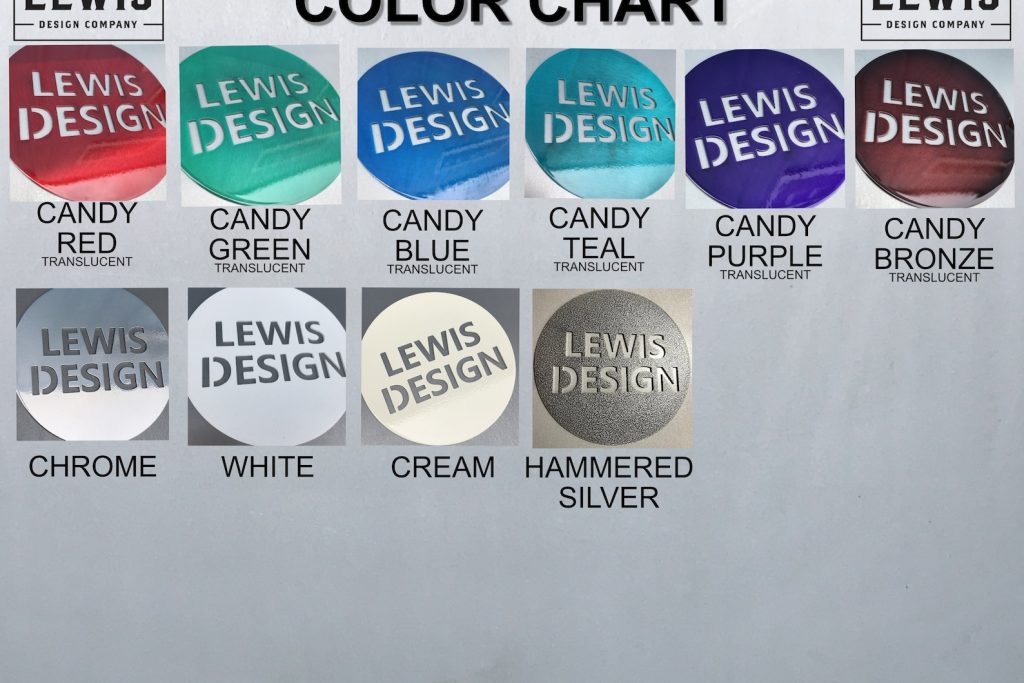 Candy colors and transparent colors are fully transparent. Any flaws that exist in the metal underneath the color will show through the color and be visible. This includes scratches, blemishes, cut marks, burns from the cutting process, etc.