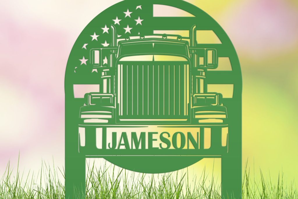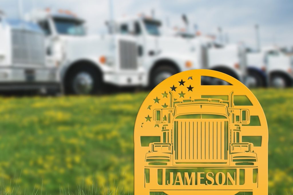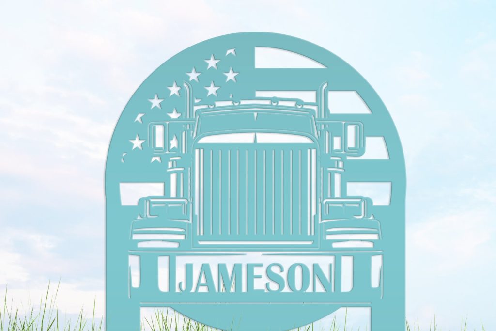 Enhance your landscaping with our unique 18 Wheeler Yard Stake. This metal custom diesel shop sign can be personalized with your last name or business name, making it a perfect trucking company lawn decor. Crafted from durable steel, this semi truck decor is built to last and adds a touch of charm to any outdoor space. Make a statement with a custom-made yard stake that showcases your love for 18 wheelers and adds a personalized touch to your exterior.