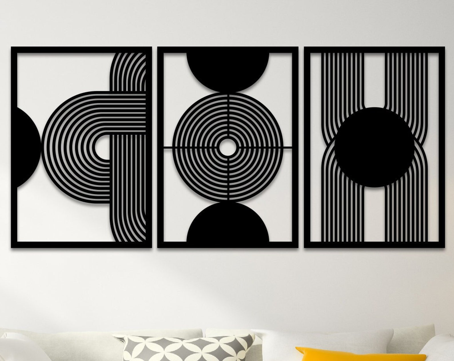 Set of 3 Abstract Wall Art, Modern Metal Wall Decor, Home Decor, Living Room Decor, Unique Mid-Century Art, House Decor, Minimal Art, Gift, Metal Wall Decor, 3 Pieces Wall Hangings, Metal Wall Art, Home Decoration, Abstract Art, Abstract Decor