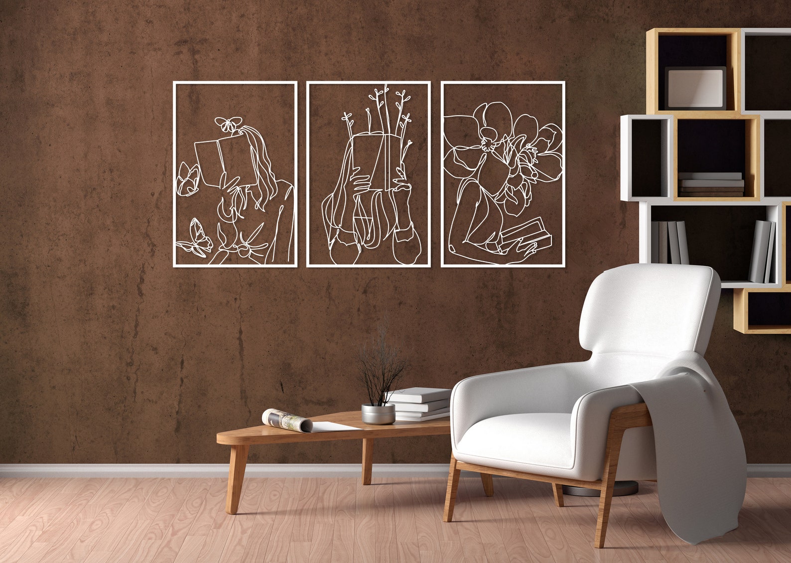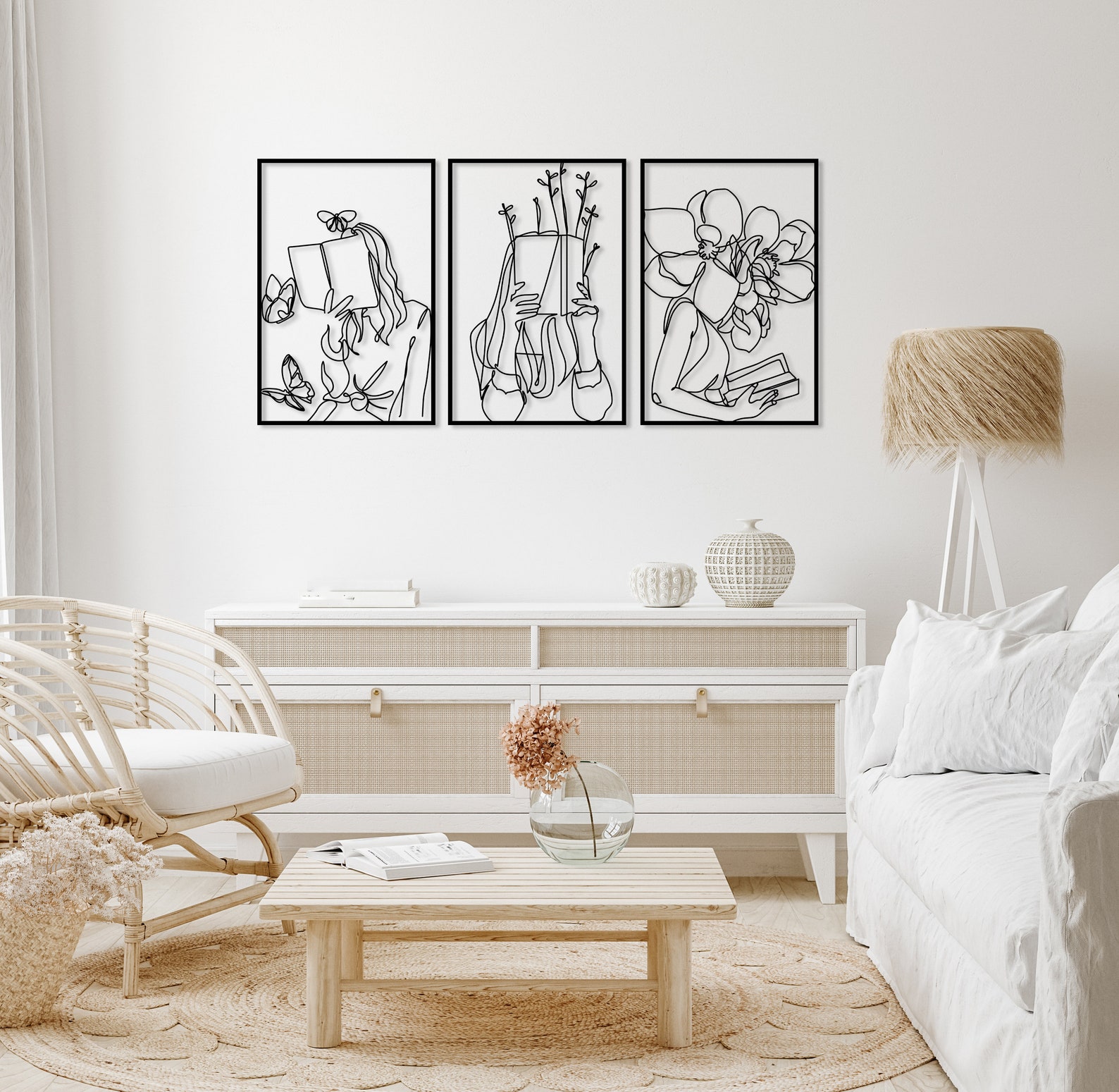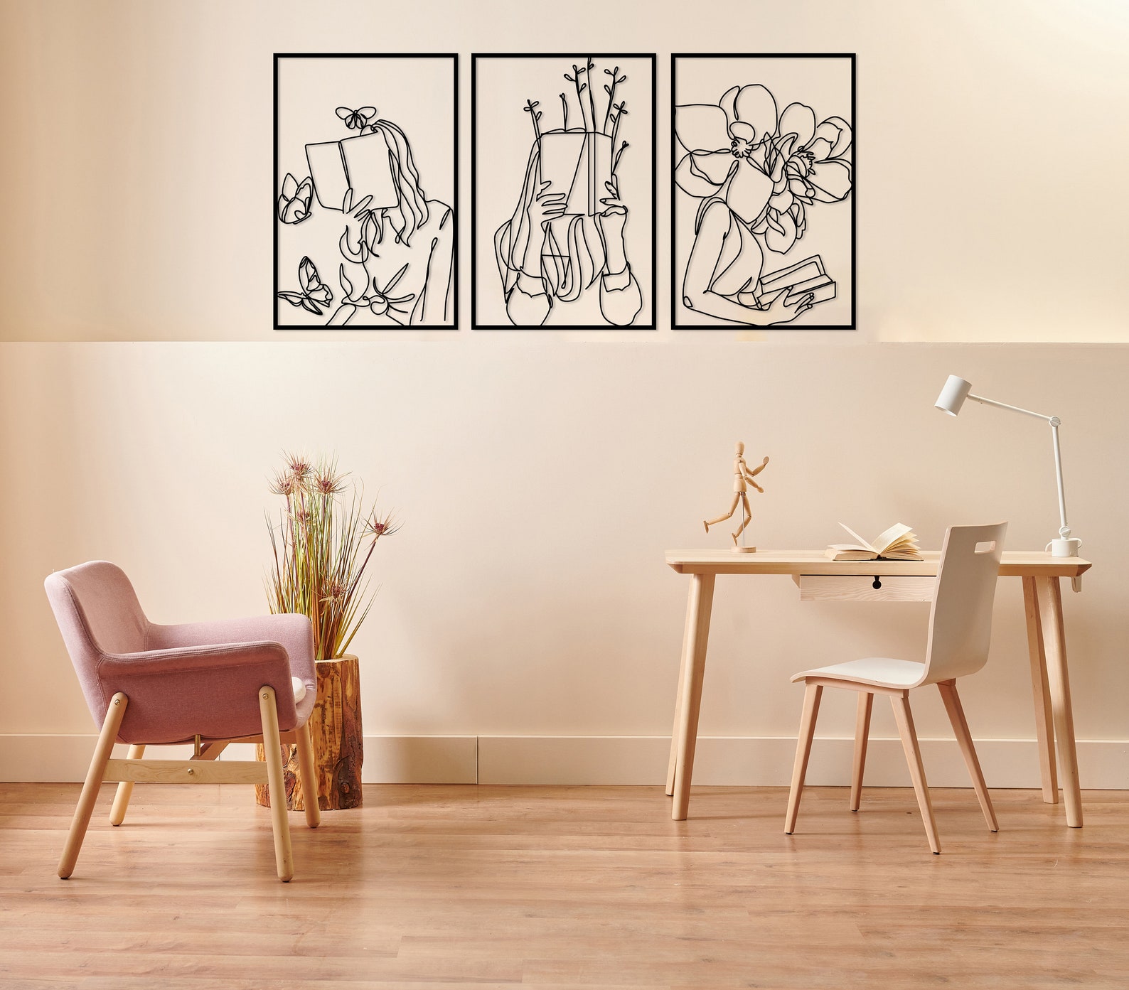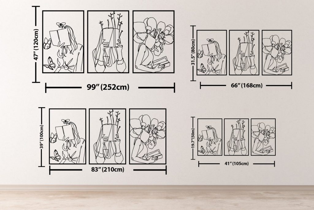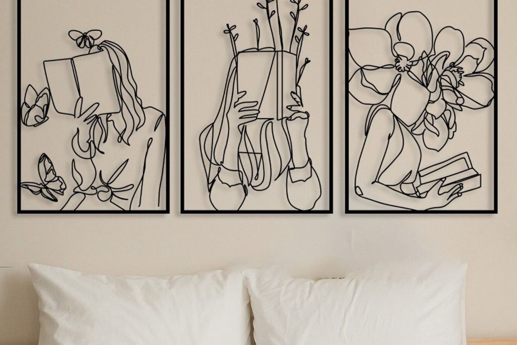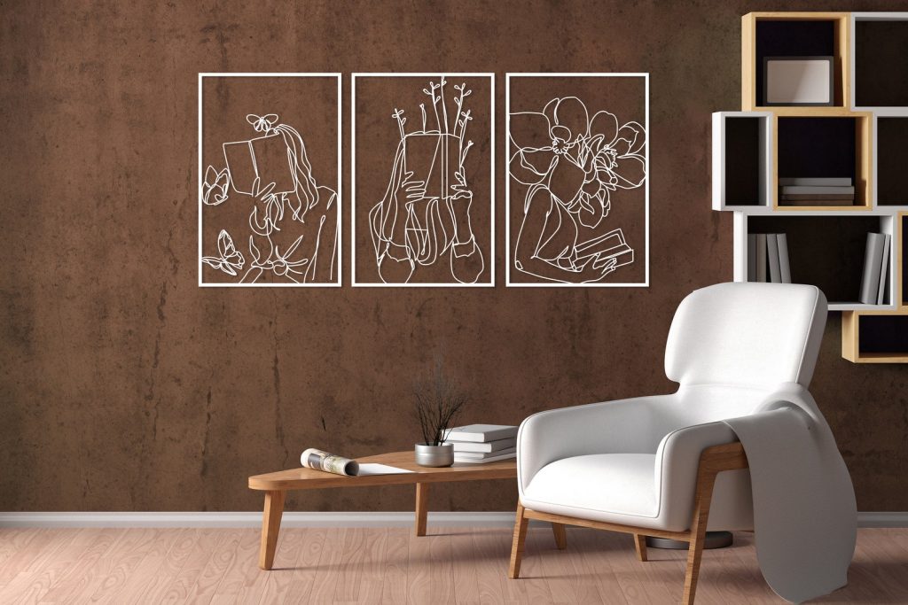 Set of 3 Bookish Metal Wall Art, Woman with Flowers Decor, Book Lovers Gift, Library Decor, Book Wall Art,Woman Reading Line Art,Minimal Art