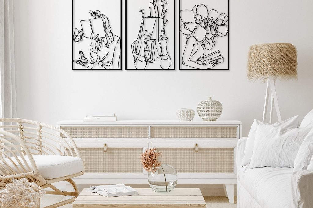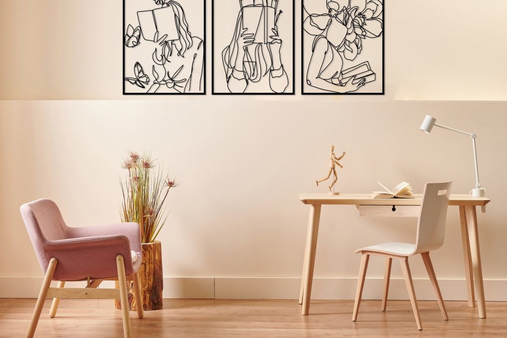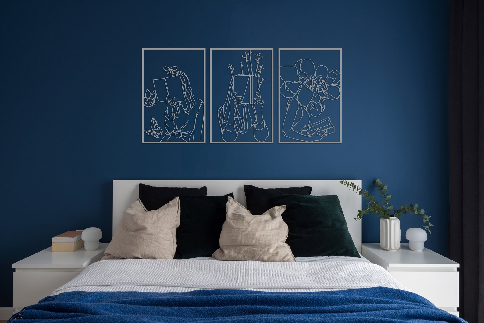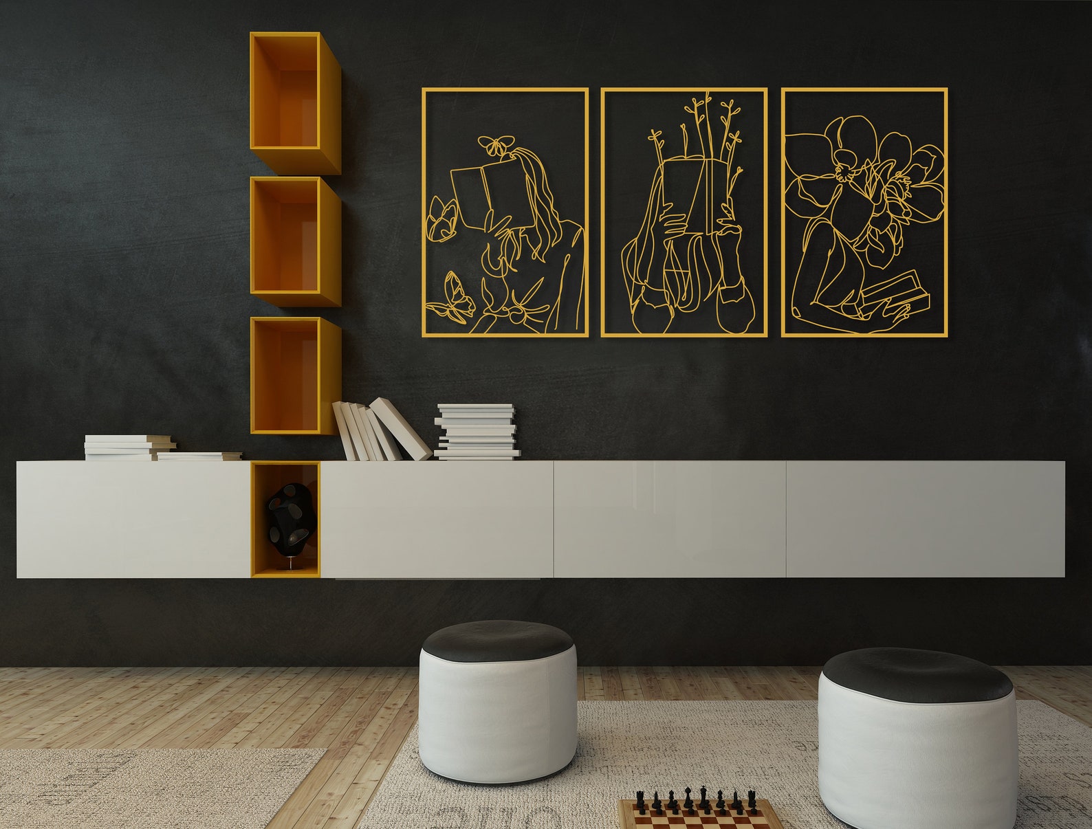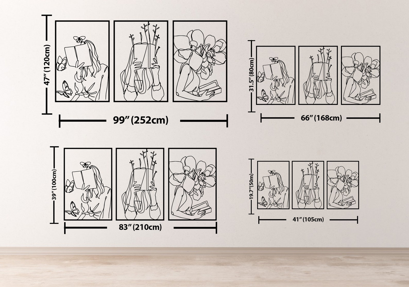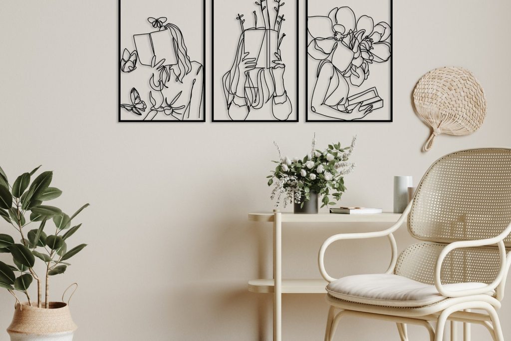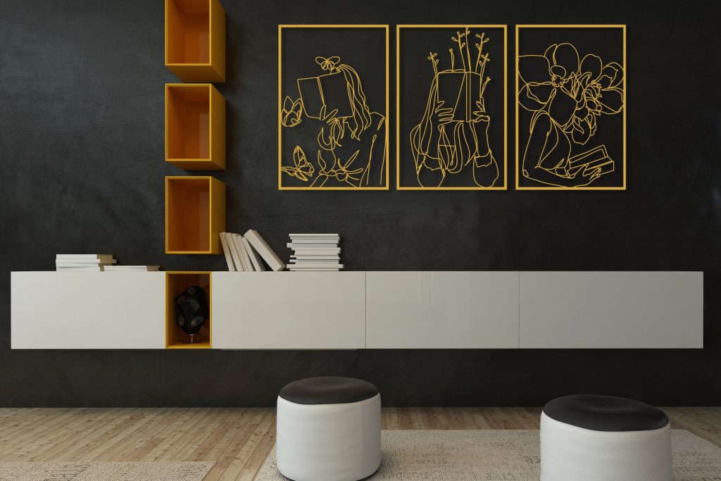 Set of 3 Bookish Metal Wall Art, Woman with Flowers Decor, Book Lovers Gift, Library Decor, Book Wall Art,Woman Reading Line Art,Minimal Art